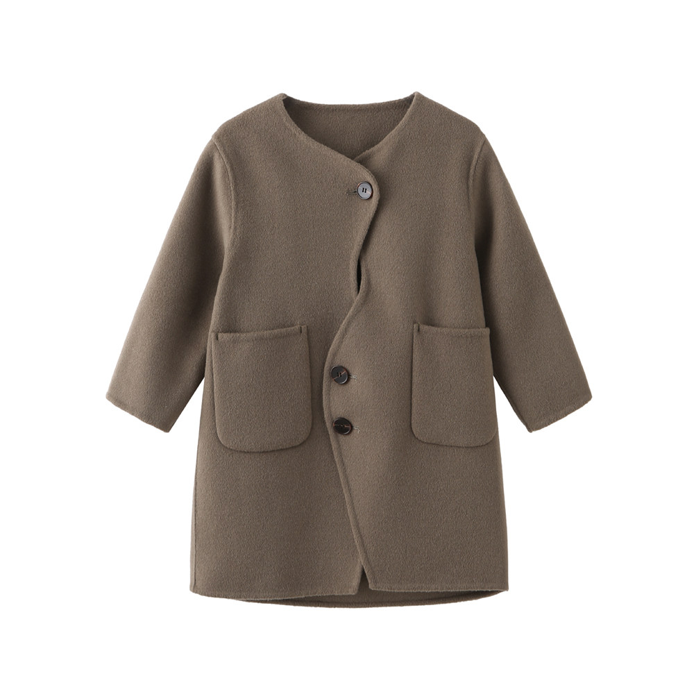 Girl's double face cashmere big coat 2021 autumn and winter Korean children's clothing designer foreign pie baby full wool Wool Coat