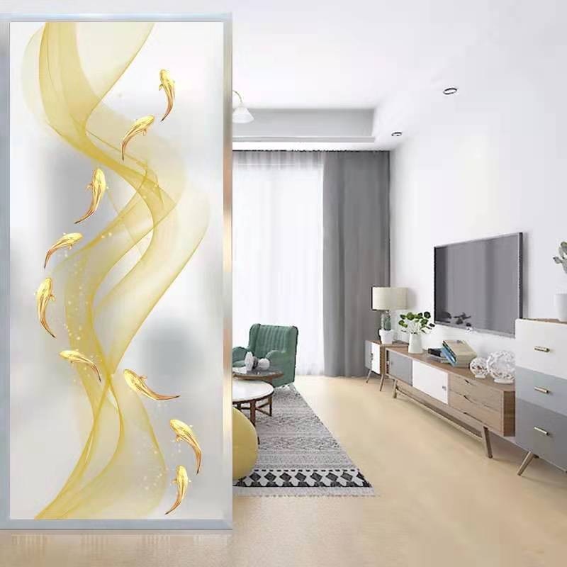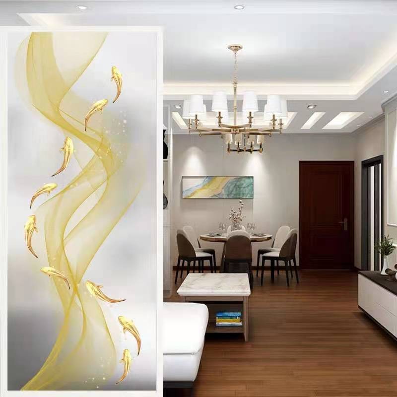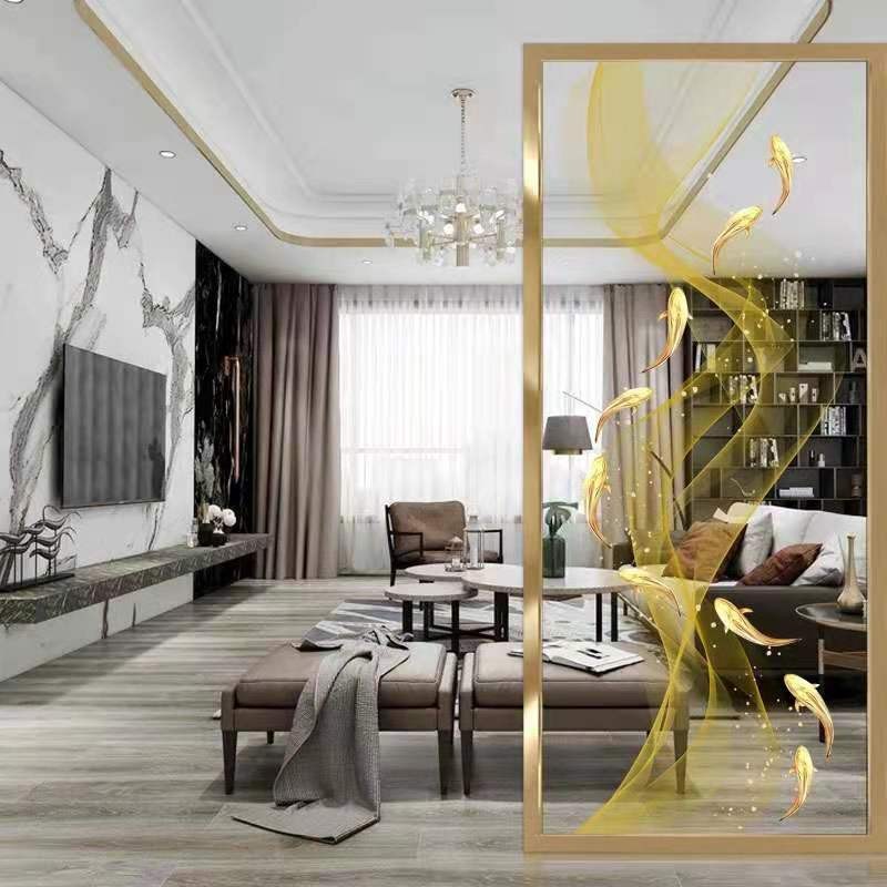 Modern simple art glass partition screen new Chinese background wall living room shade colored glaze decorative painting TV cabinet