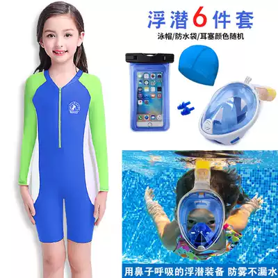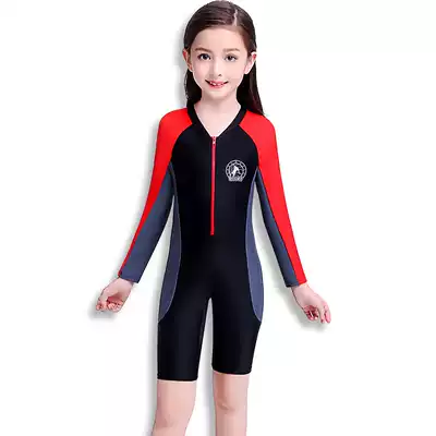 Children's swimsuit Girls 'and girls' summer one-piece long sleeve sunscreen Middle school children's student training hot spring quick-drying swimsuit set