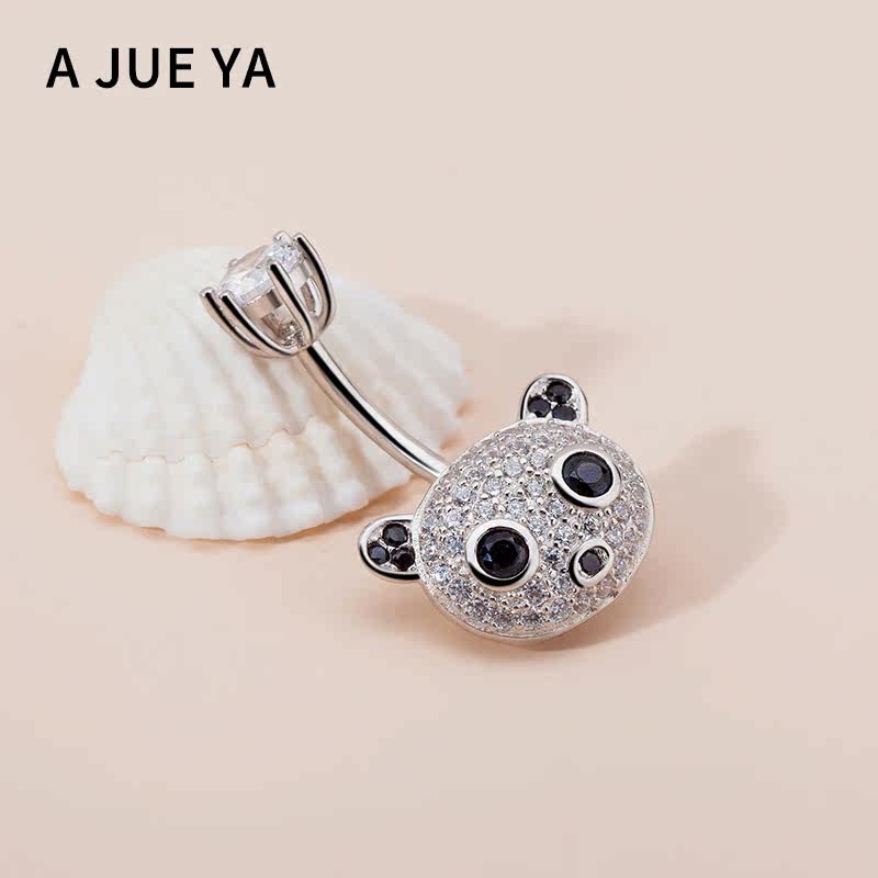 Panda Navel Nails 925 Pure Silver Anti Allergy Silver Panda Navel Rings European and American Sexy Fashion belly button ring