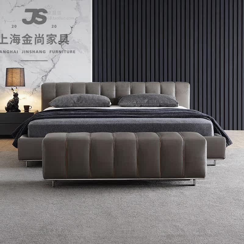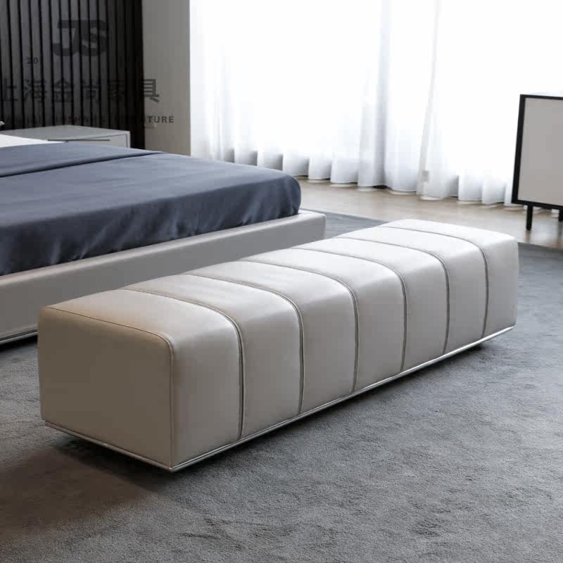 Nordic light luxury leather bed end stool Italian porch long stool living room leisure stool metal sofa stool changing shoe stool