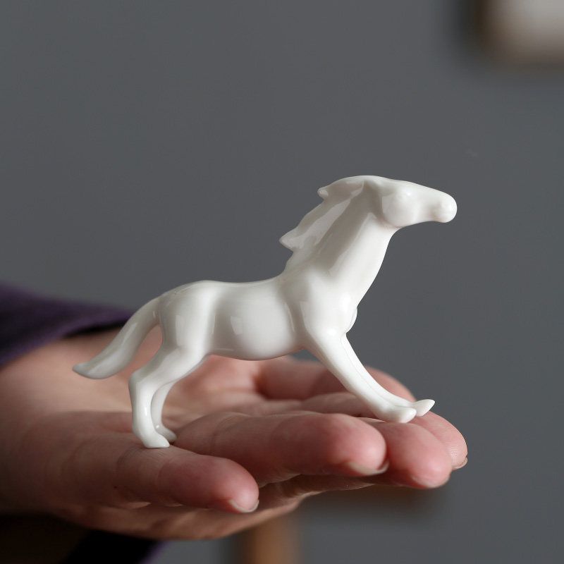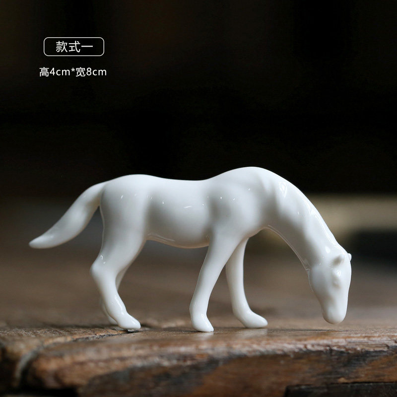 White porcelain-Fusharma-head-up horse-bowed down to eat straw white porcelain-contemp no-comic-kilns-caressing the violin