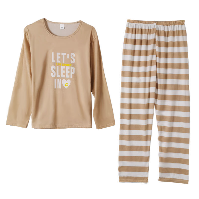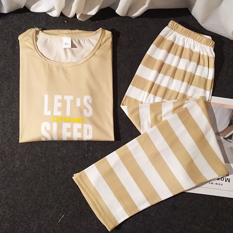 Alphabet striped pyjamas woman long sleeve long pants Korean version casual sports home jacket head teenage girl plus size suit