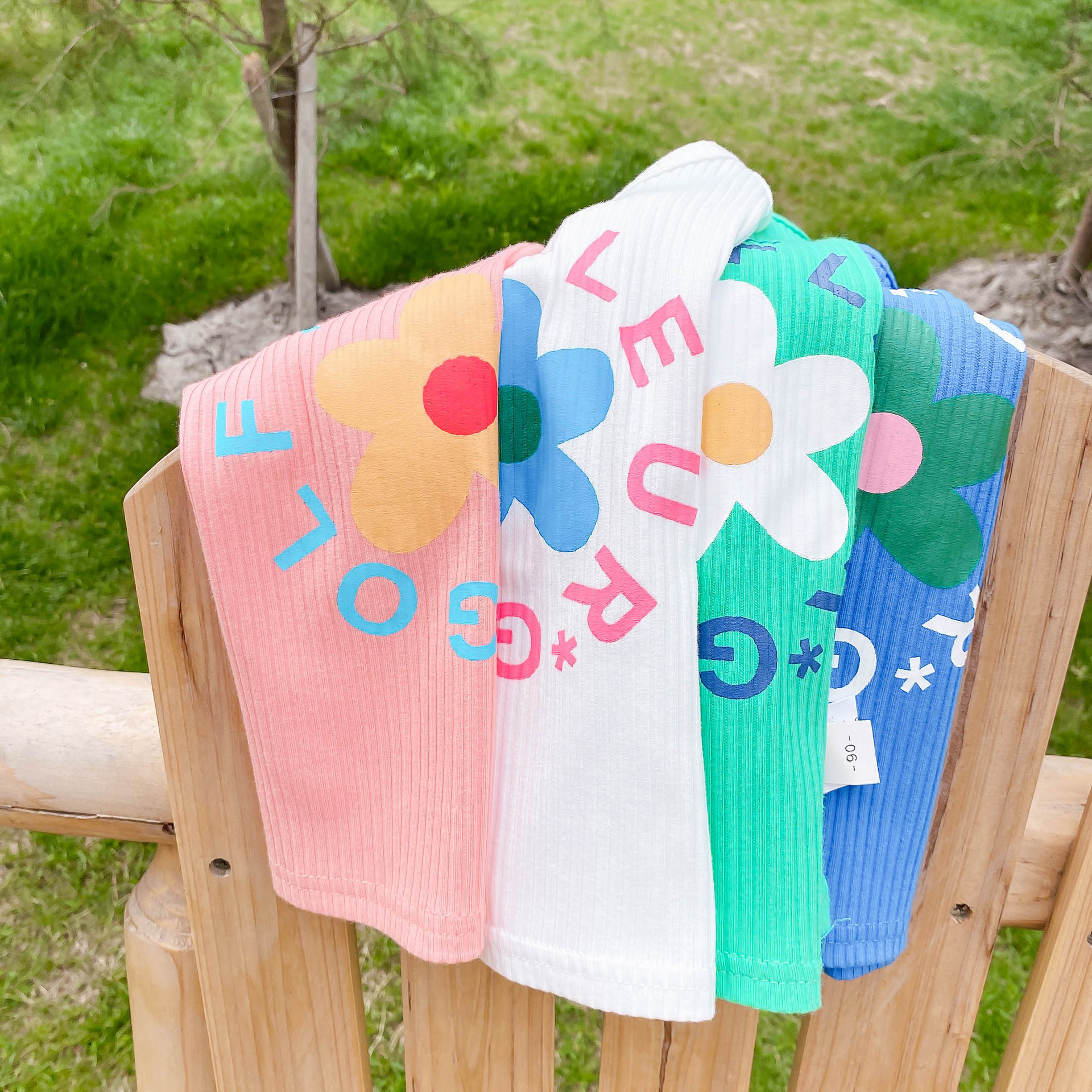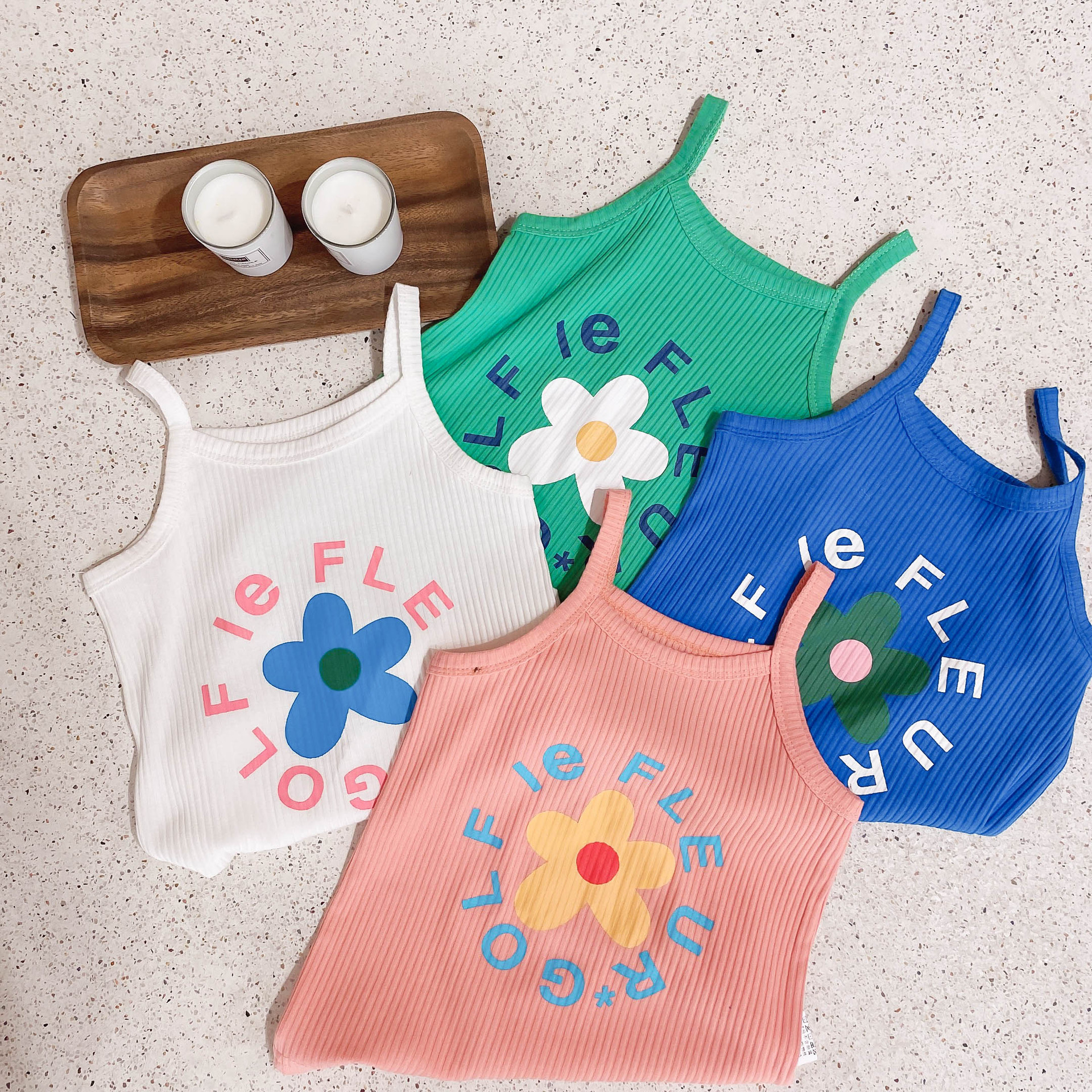 Girl Harnesses Vest 2021 Summer middle children breathable knit Korean version of the sea Casual Little Flowers Little Fresh blouses