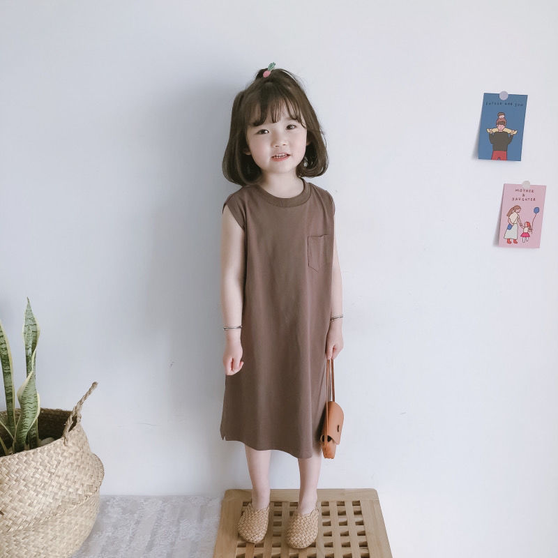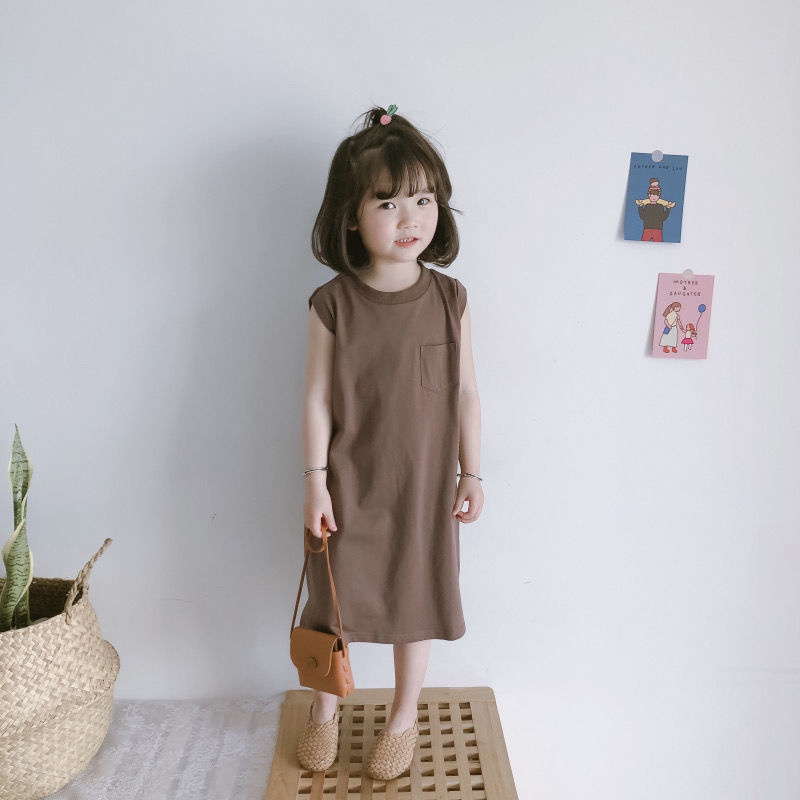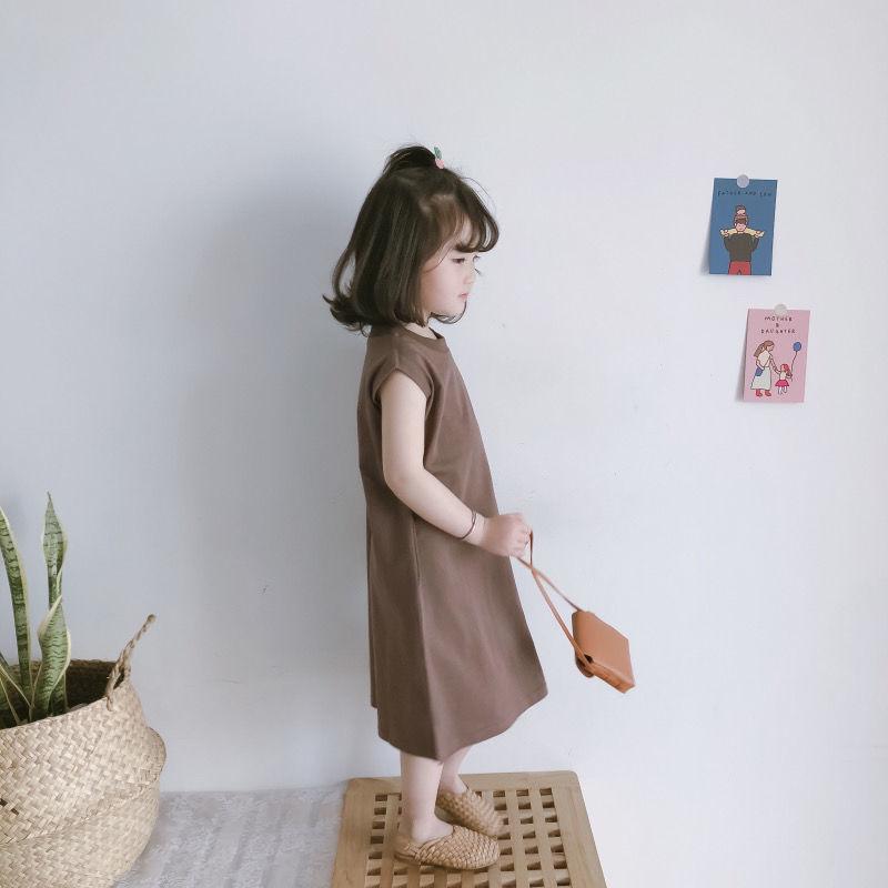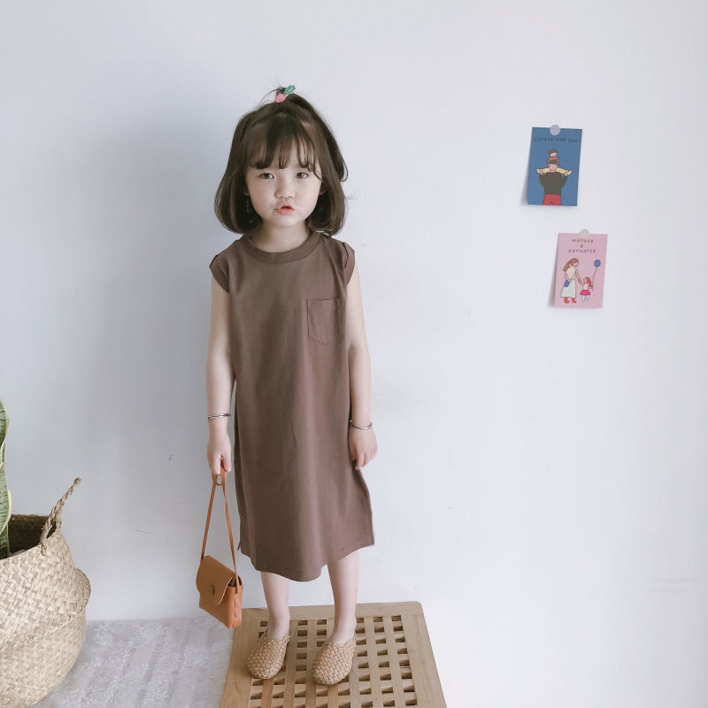 Girl Spring Clothing 2021 South Korean Baby Leisure Brief Yoloose Yoon Girl Sleeveless Mid t-shirt T-shirt Foreign Dress