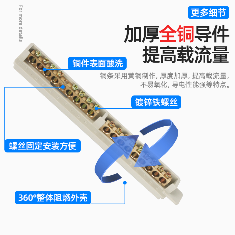 Distribution box PZ30 circuit box grounding zero wiring row terminal row zero branch wire connector zero ground row pure copper