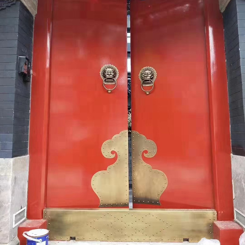 Antique door Ruyi pure copper-clad corner old-fashioned wooden threshold layered courtyard door corner guard garden villa door decoration