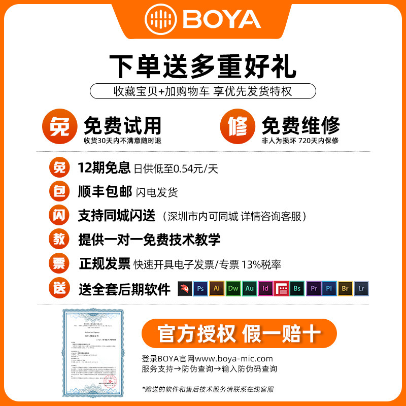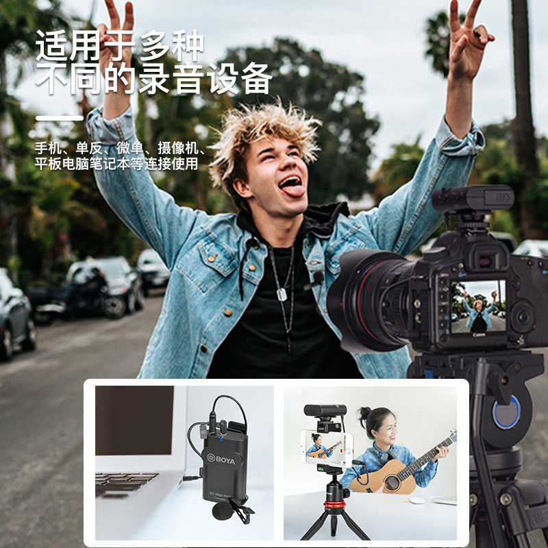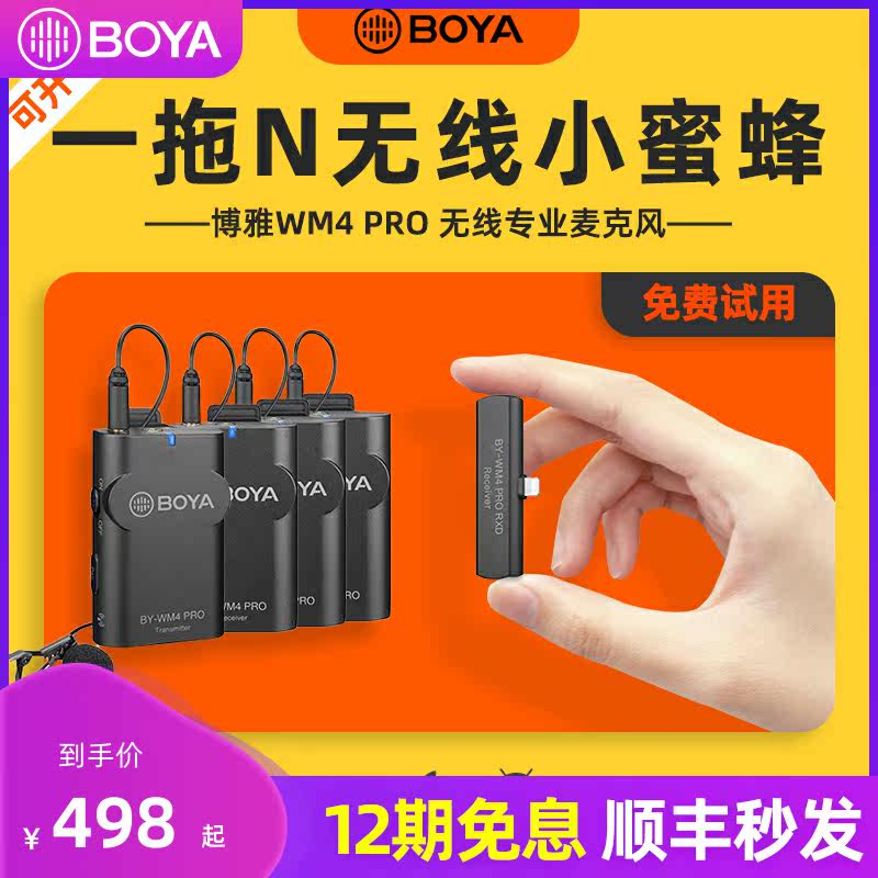BOYA boya wireless microphone collar clip type WM4 PRO phone computer single eye camera small bee shake sound live coverage of the sound recording device full set of professional one drag 2 WM4PRO