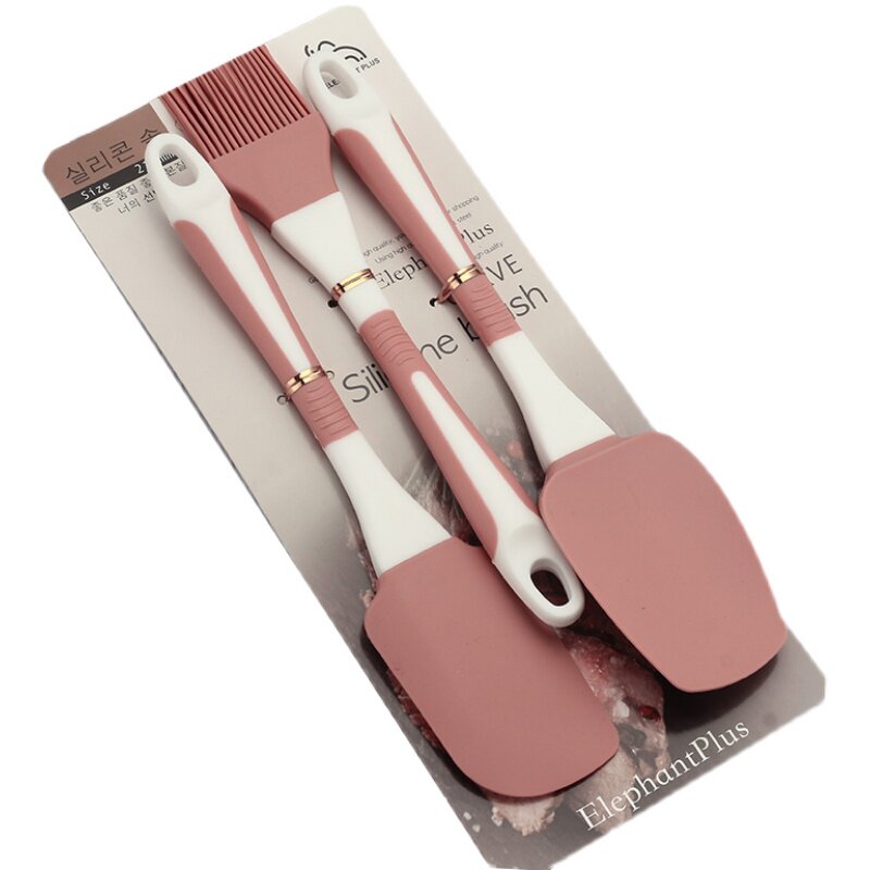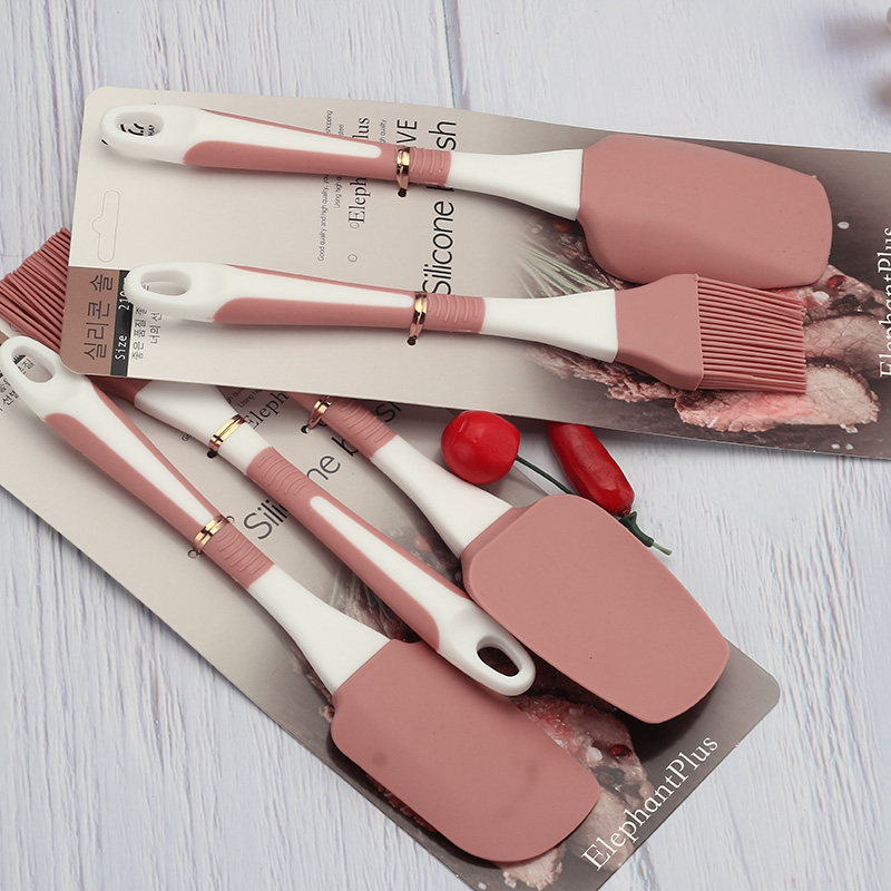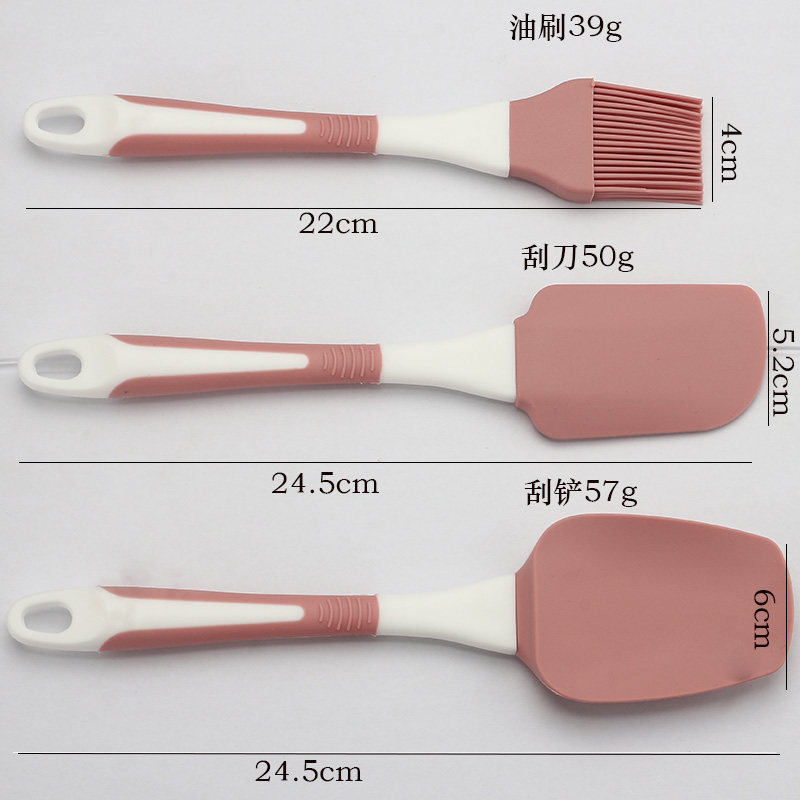 Bicolor powder red silicone brush + scraper bicolor pink silicone brush + scraping shovel bicolor pink silicone scraper + scraping shovel bicolor pink silica gel three sets bicolor pink silicone scraped + clip bicolor pink silicone brush