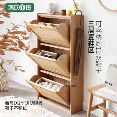 Geng's wooden Wood tipping bucket narrow shoe cabinet home door ultra-thin porch cabinet living room shutter door floor locker