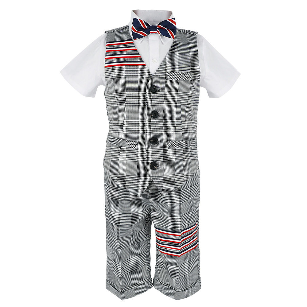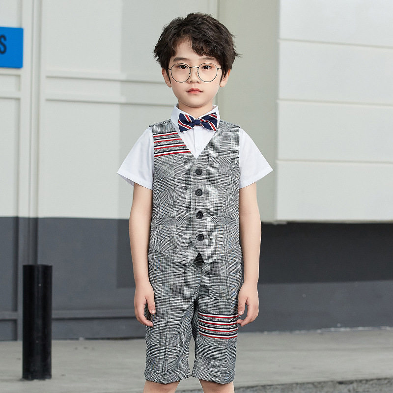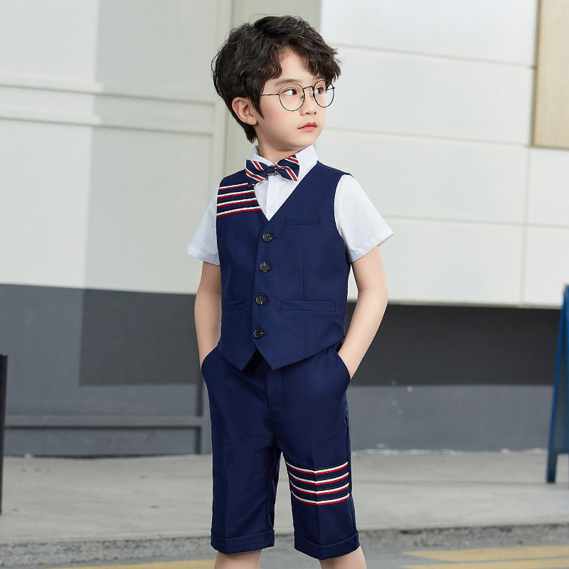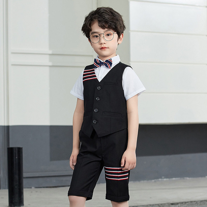 3 pieces of black (vest trousers bow tie) 3 pieces of navy blue (vest trousers bow tie) 3 pieces of grey (vest trousers bow tie) 4 pieces of black (shirt vest trousers bow tie) hidden