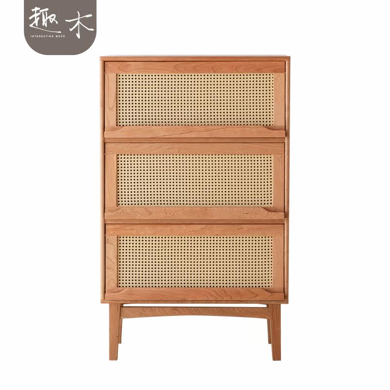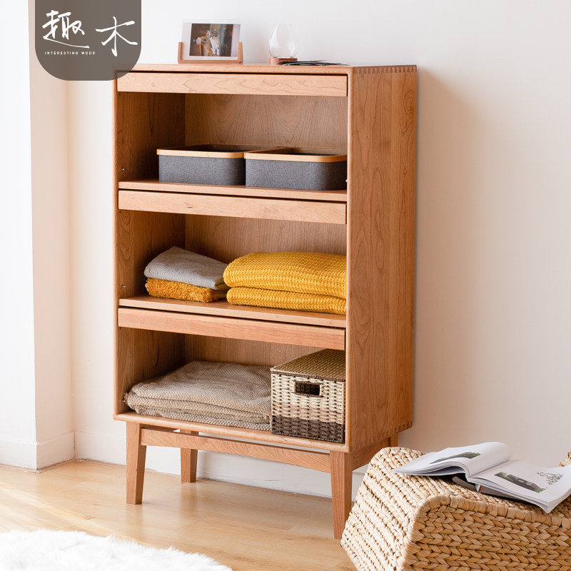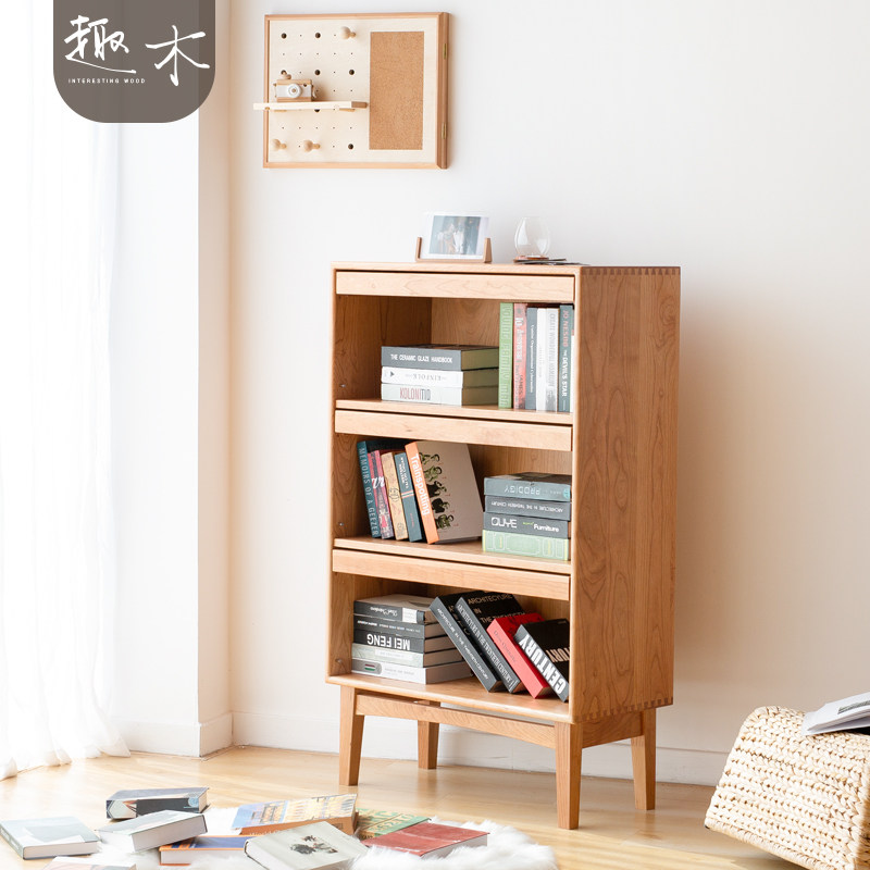 Nordic Day Style Cherry Wood Small Bookcase Solid Wood Hopper Cabinet Placement Vines Collection Cabinet Living-room Bookcase Small Side Cabinet