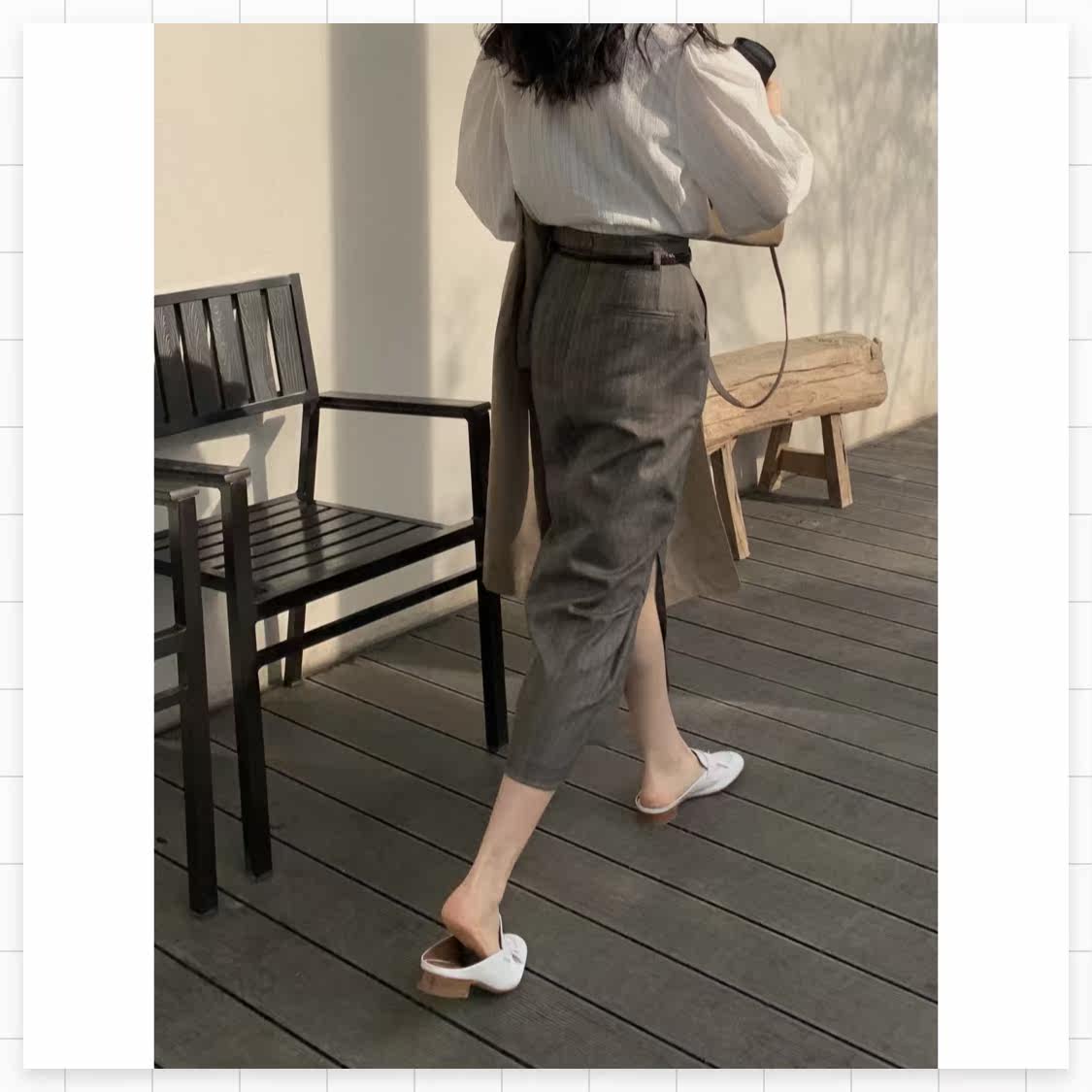 (FARM) high waist medium long version commuter straight drum skirt woman gentle temperament trendy retro autumn and winter heat sell spot