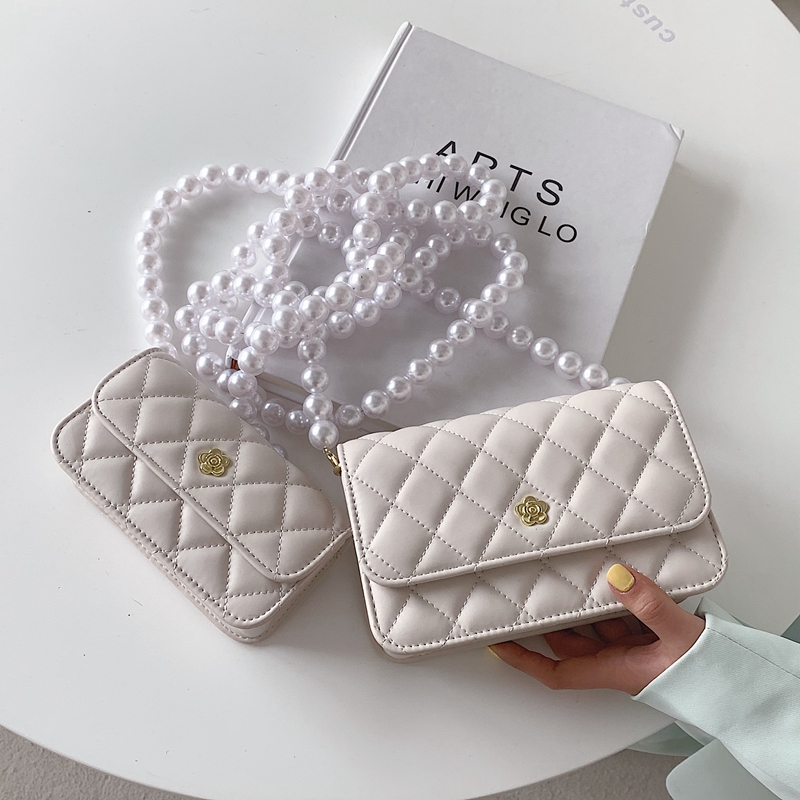 Tide Card Mini Packet Bag 2021 New Tide Fashion Pearl Chain Pack Woman Bag Mesh Red 100 Lap Single Shoulder Diagonal Satchel Bag