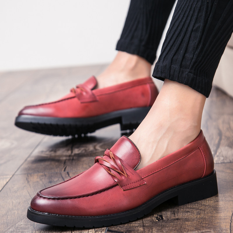 Loafers men's youth bright lazy business casual one pedal beanie leather shoes breathable hair stylist formal men's shoes