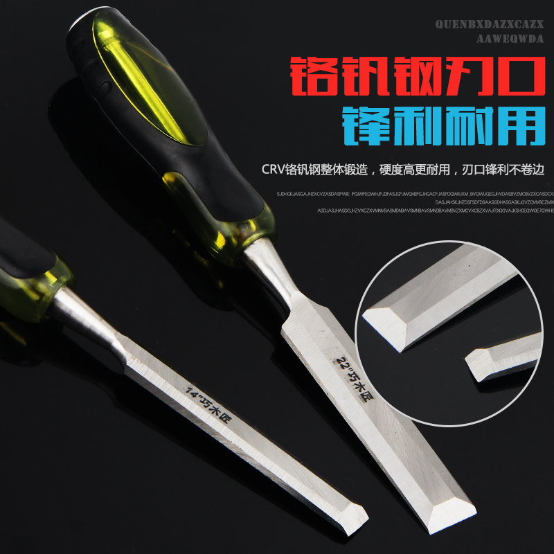 Wood chisel Chisel knife Flat flat shovel Woodworking chisel flat shovel Chisel tool Special steel Chromium vanadium steel steel heart-piercing handle set flat chisel