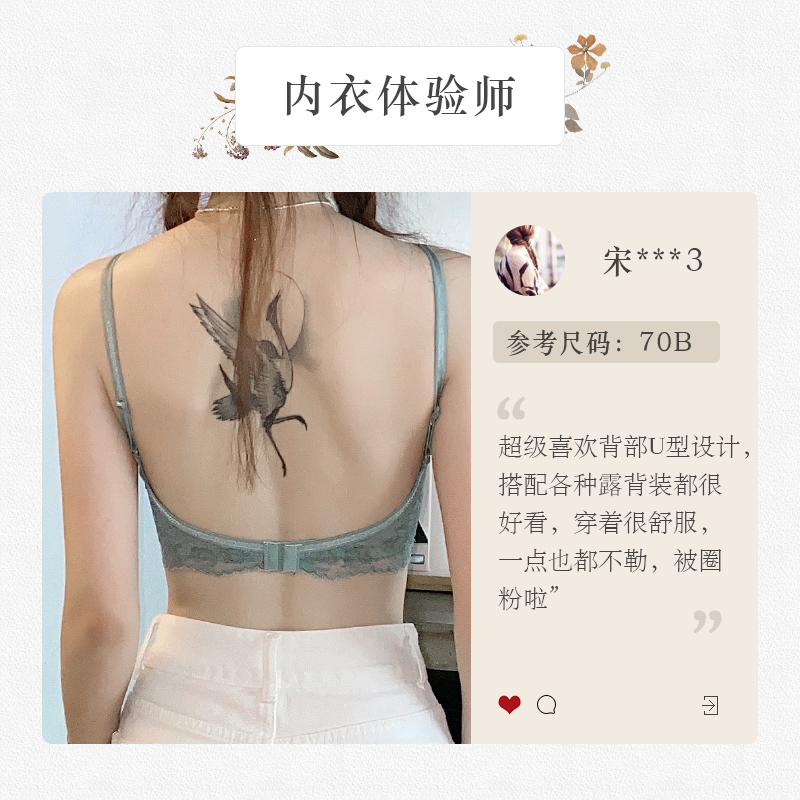 Bao Shiyan French u-shaped beautiful back underwear women's thin summer new 2021 backless bra set X