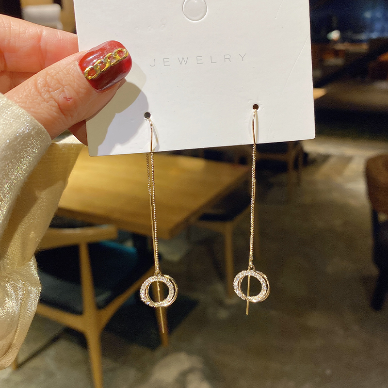 Earrings 2021 new trendy Korean long version circle earrings simple and versatile temperament net red anti-lost face thin earrings