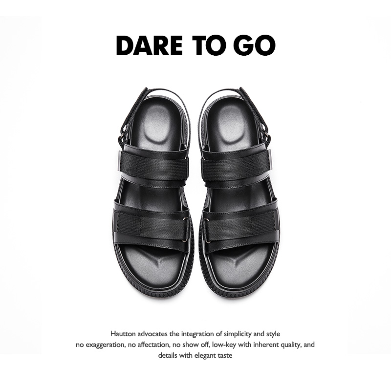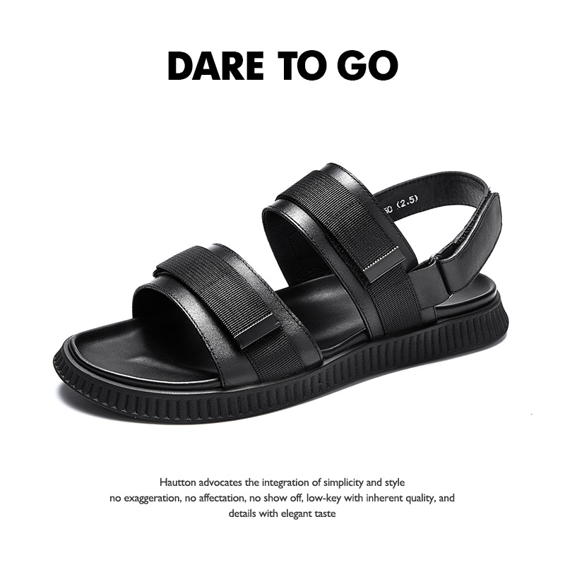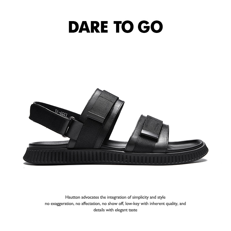 HT Haodun stepping on shit sandals new summer soft bottom dual-use sandals trendy men's casual leather beach sandals and slippers