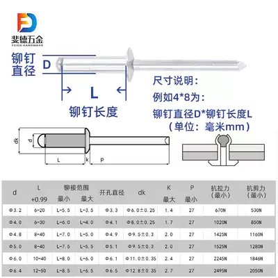 Rivet Open type blind rivet all aluminum alloy pull nail round head countersunk head big cap pull Rivet 2 4 3 3 2 4 3 2 4