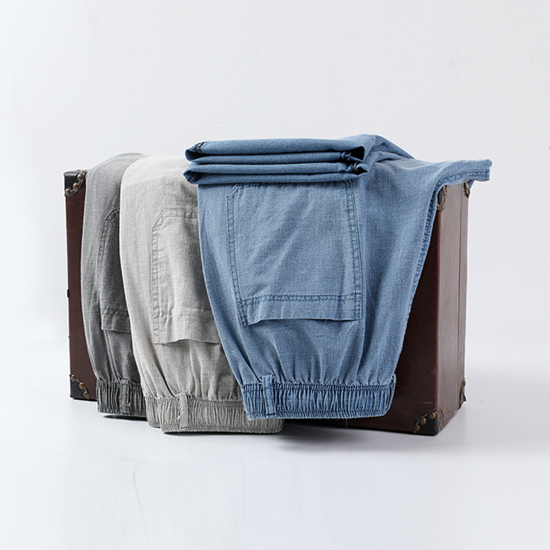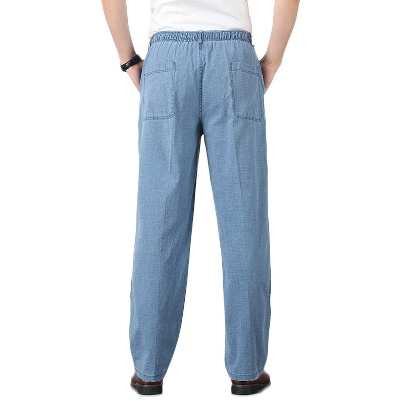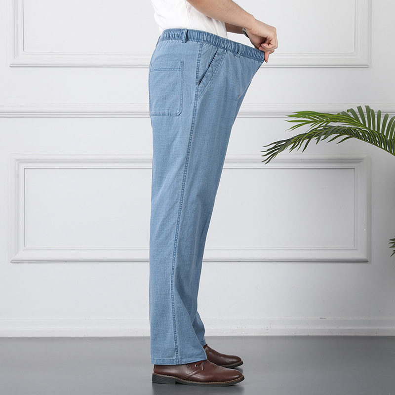 Summer ice silk linen elastic waist dad pants men's elderly loose middle-aged cotton and linen casual pants middle-aged and elderly thin