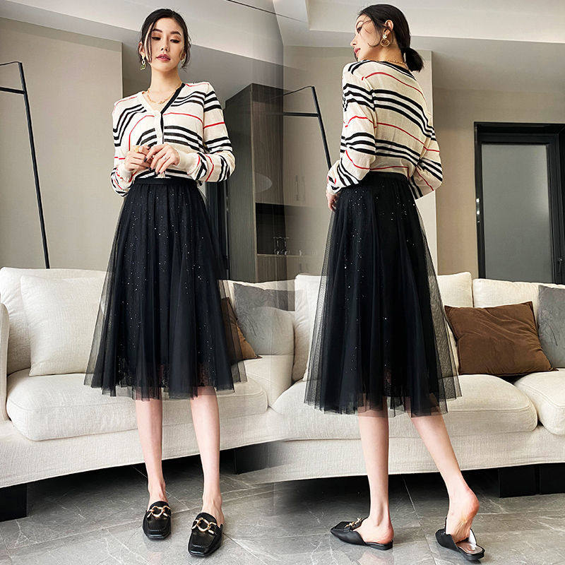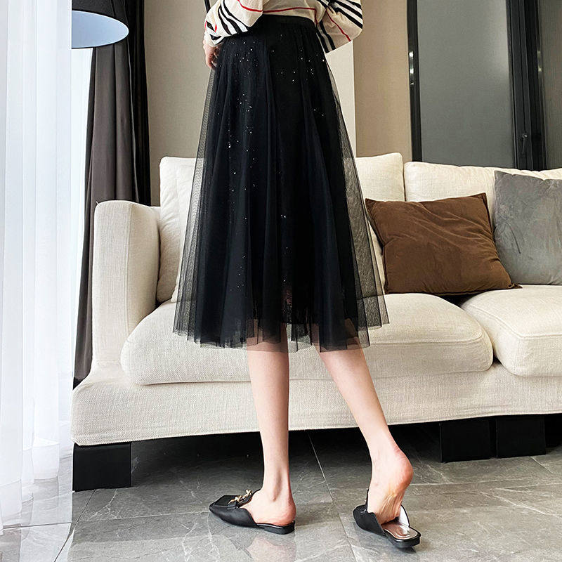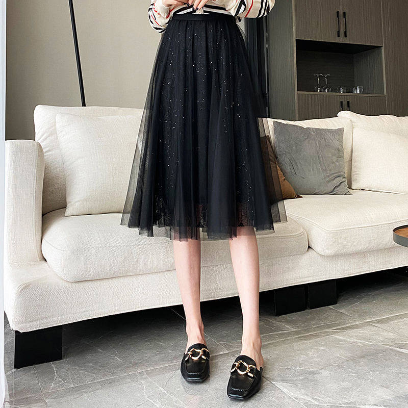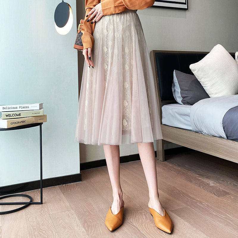 Spring and summer black lace skirt female small high waist Korean version princess skirt gauze skirt