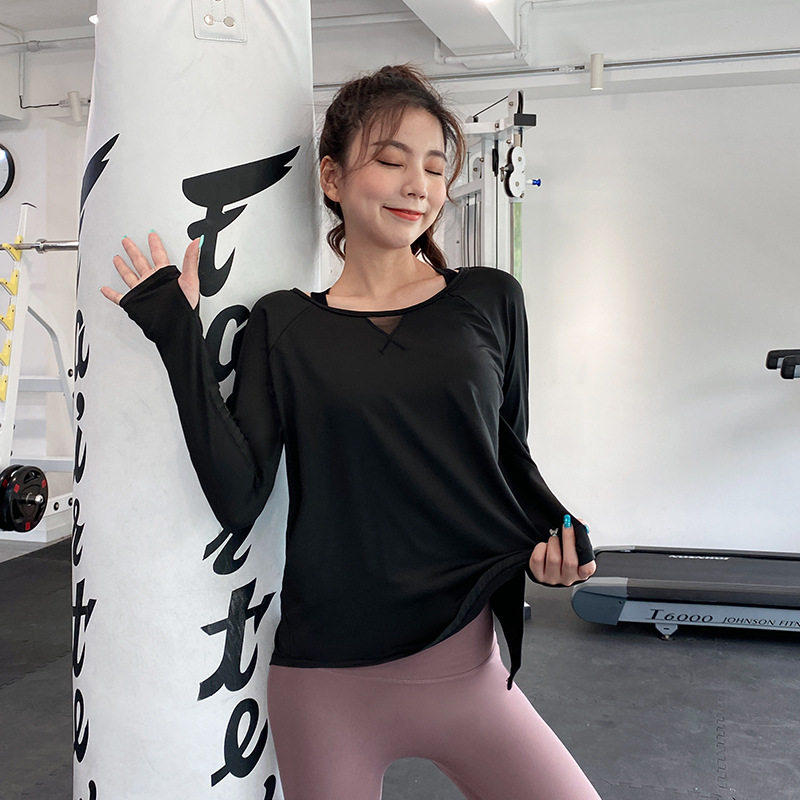 Sports blouses women loose elastic display slim running speed dry T-shirt long sleeve mesh red fitness 100 hitch yoga conserved spring summer