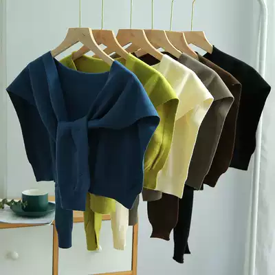 Summer net red knitted knotted small shawl female outer wear neck protection shirt skirt Air conditioning office blue shawl