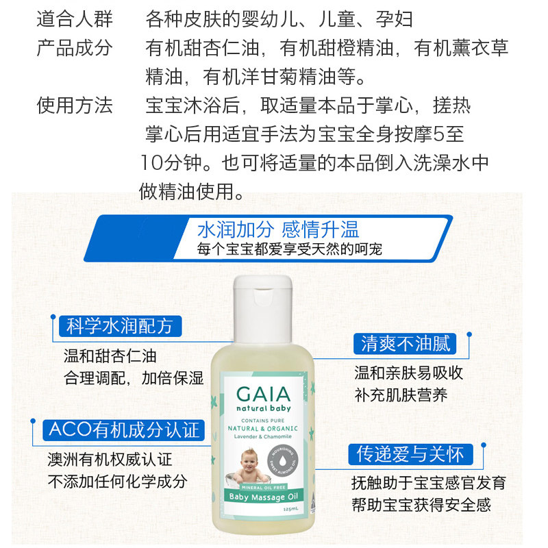 Australia GAIA newborn baby massage oil bb oil without stimulation and touch natural with organic anti-sensitive formula 125ML