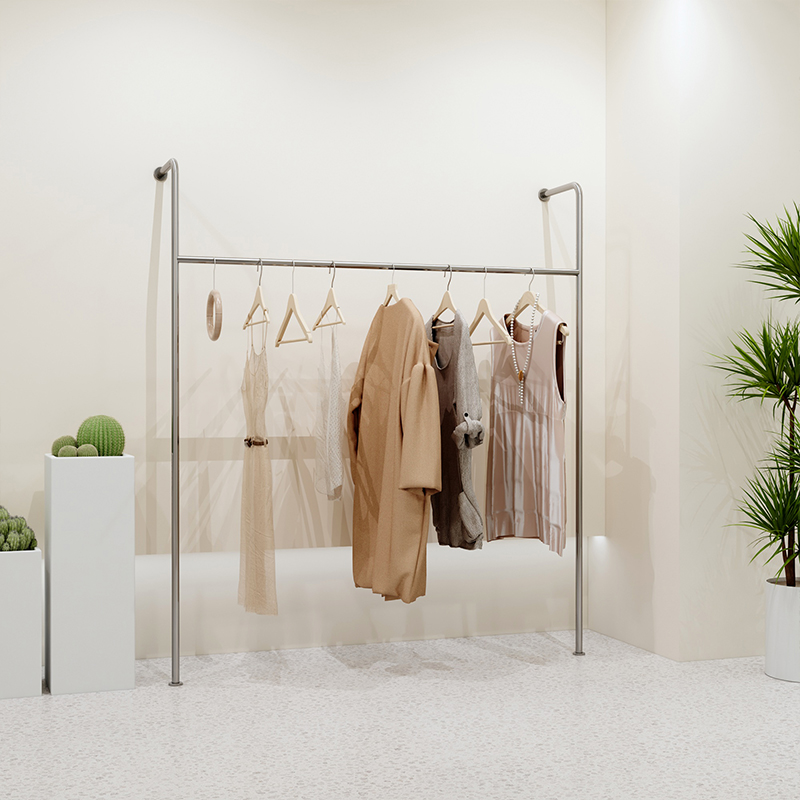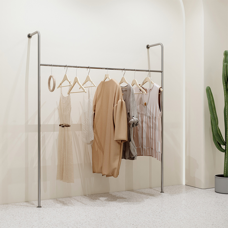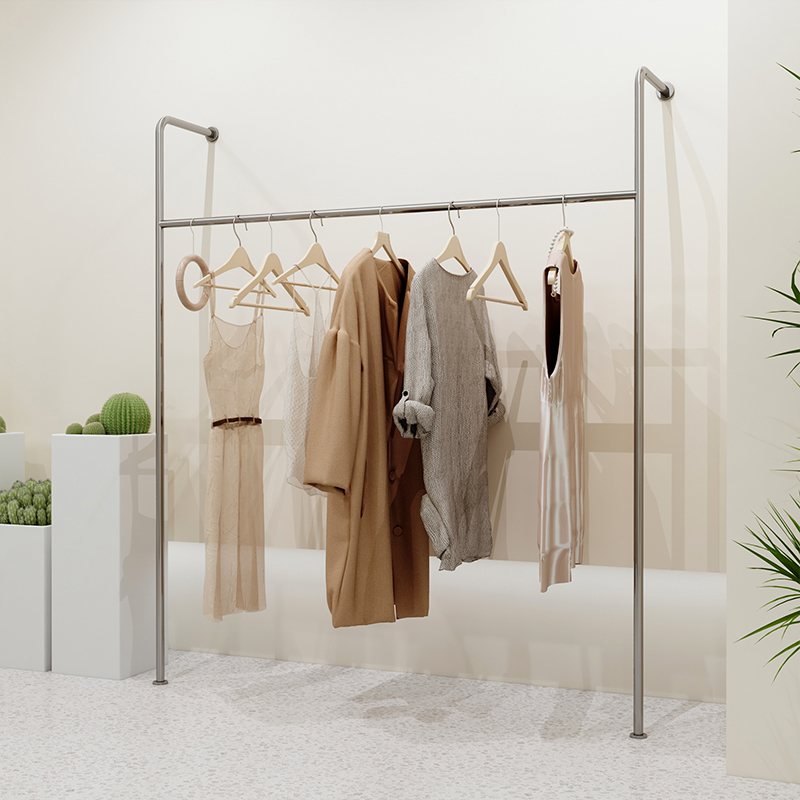 Clothing Shop Show Shelf Stainless Steel Wire Drawing Upper Wall Floor Shelf Men And Women Children's Clothing Store Shelves Net Red Creativity Hanging Clothes