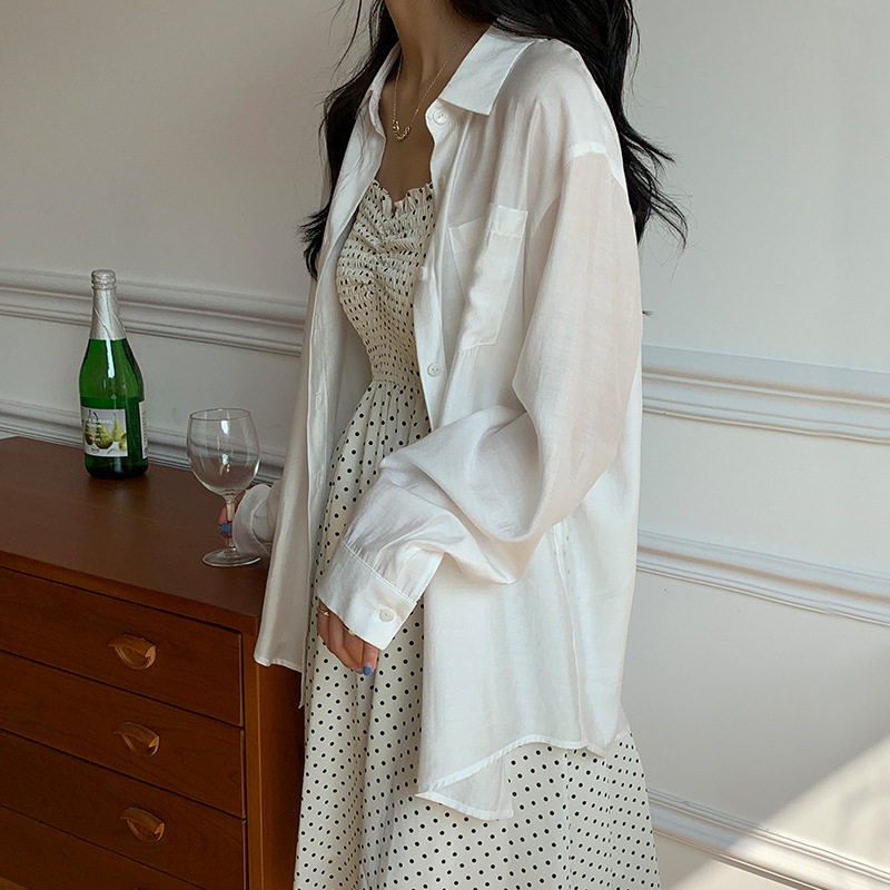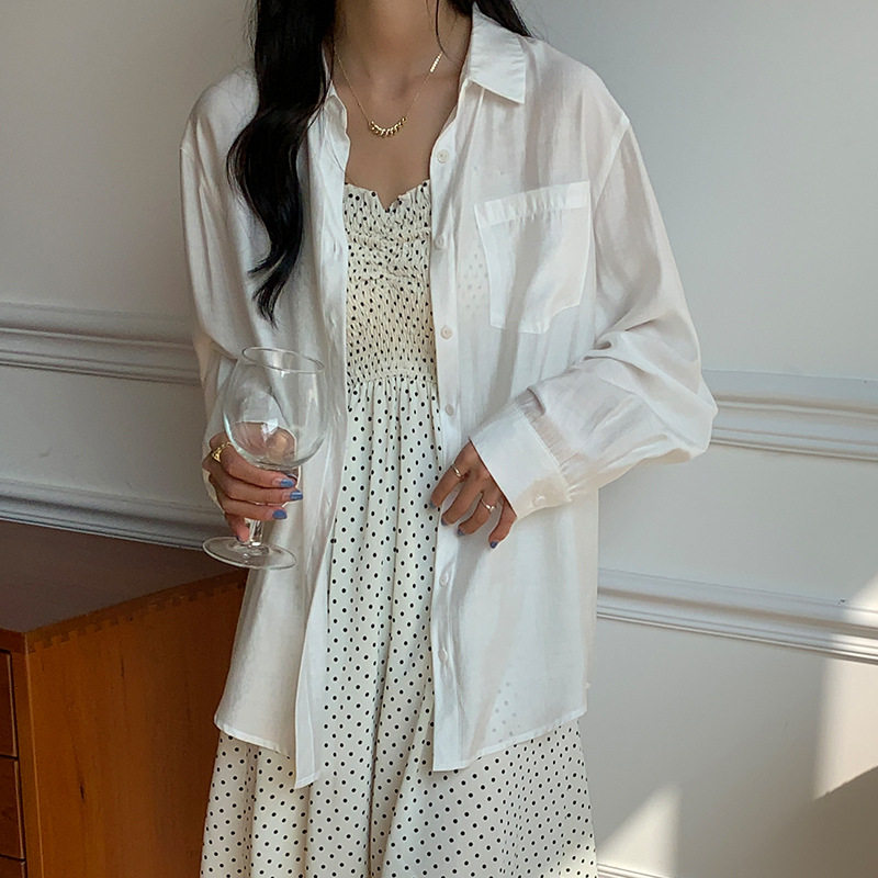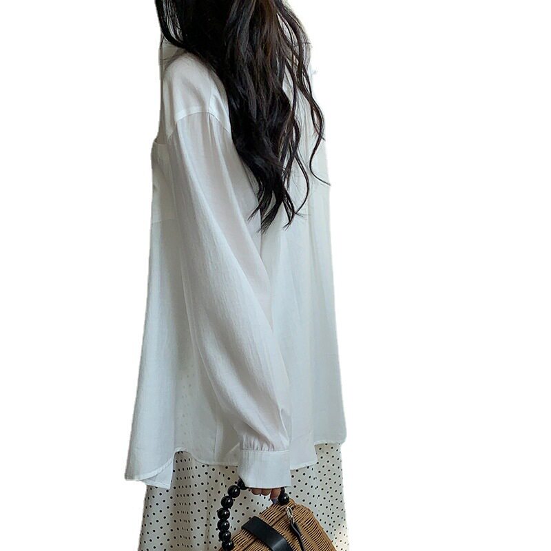 Tencel super fairy white sunscreen shirt women's summer lapel versatile Chiffon sunscreen shirt long sleeve thin outer jacket