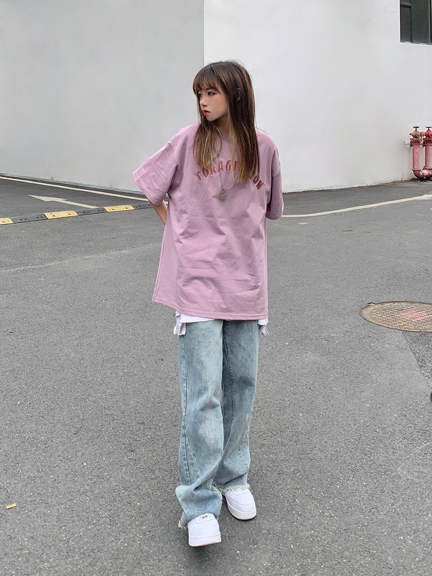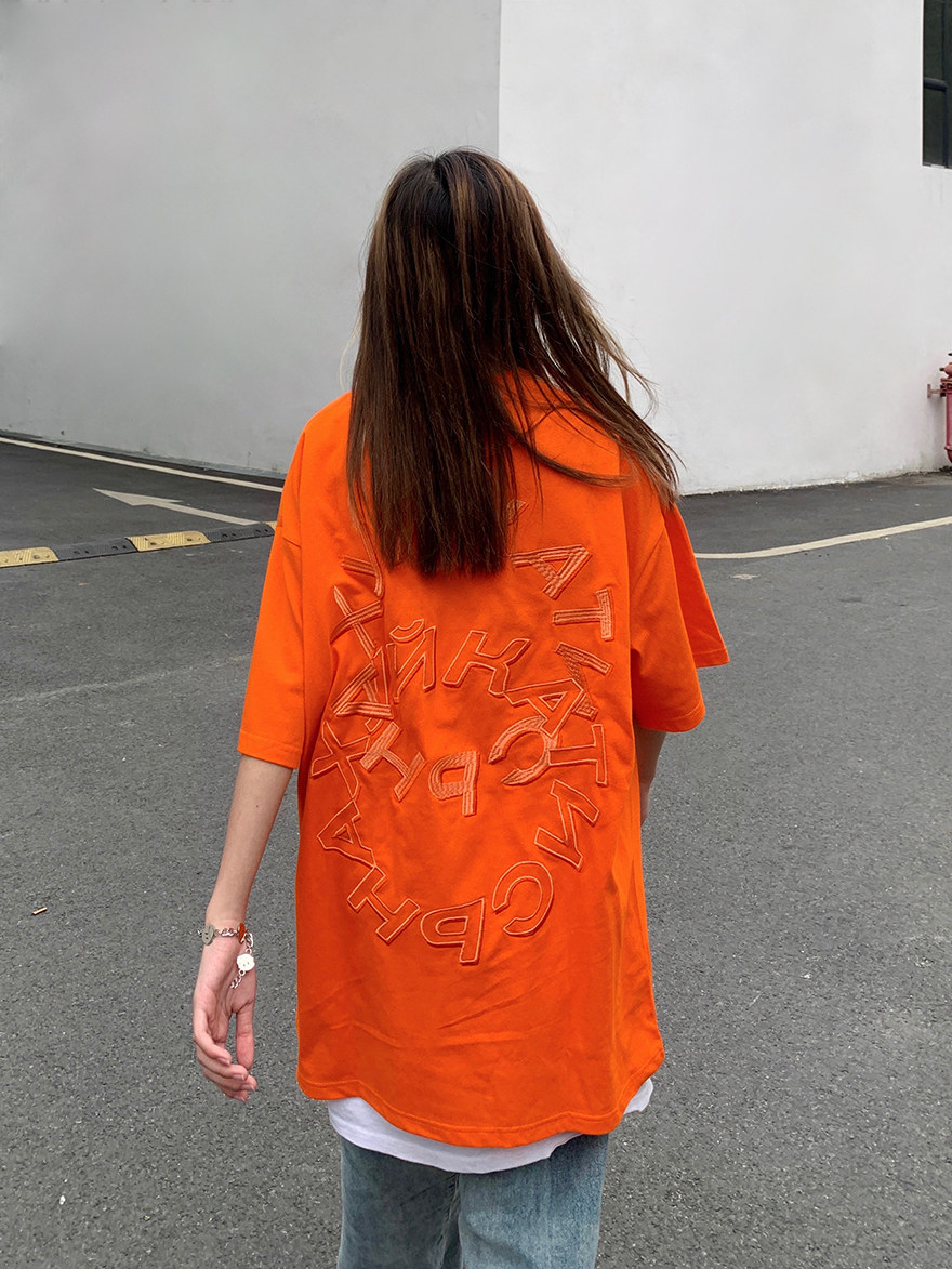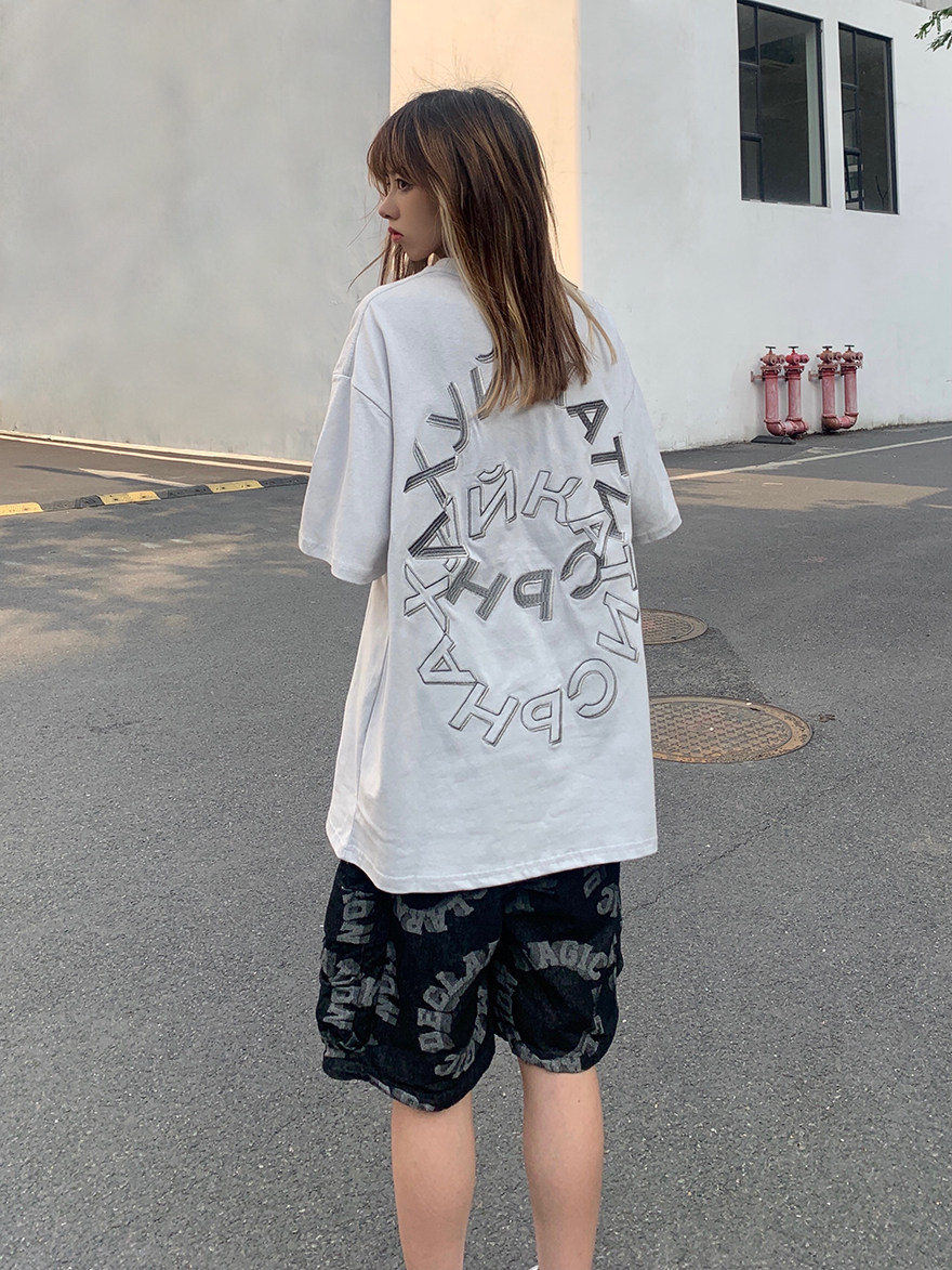 Legal alien American street letter embroidery short-sleeved T-shirt men and women oversize tops ins tide brand loose