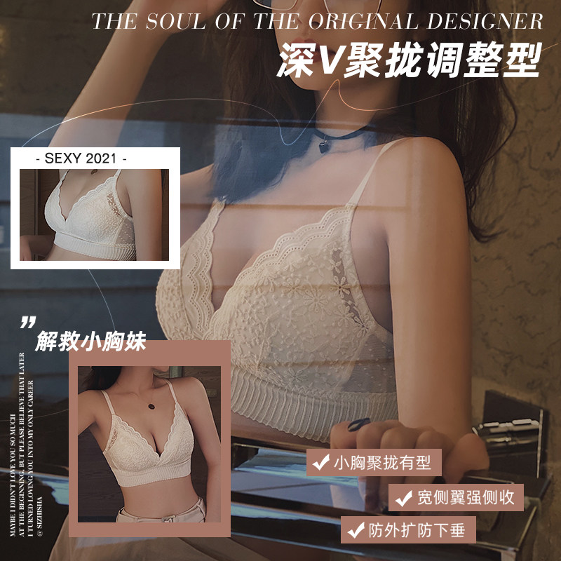 Underwear women's summer small chest thin summer non-rimmed gathered anti-sagging bra Adjustment type flat chest special bra