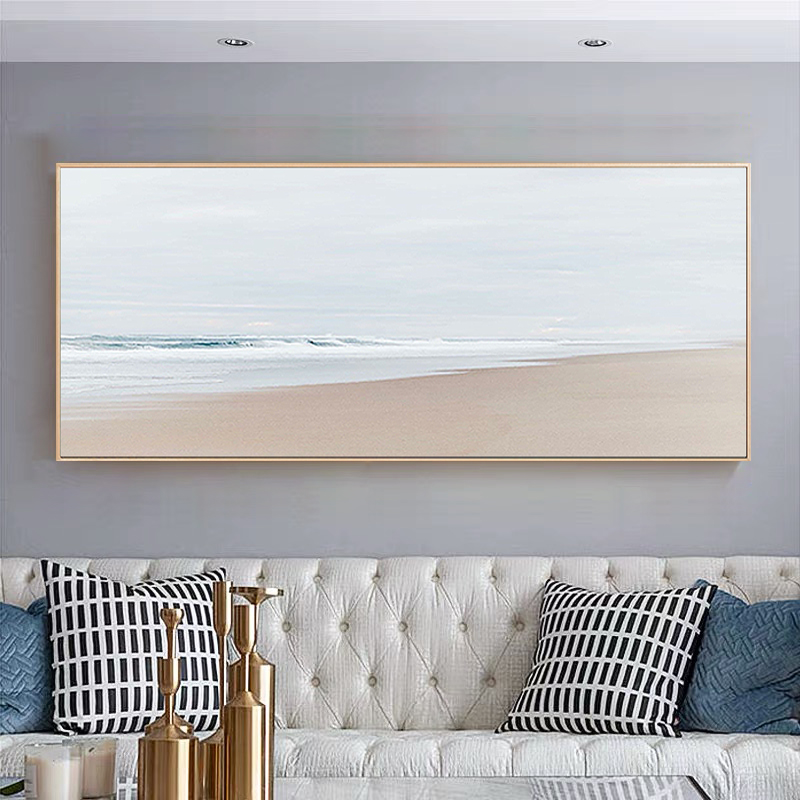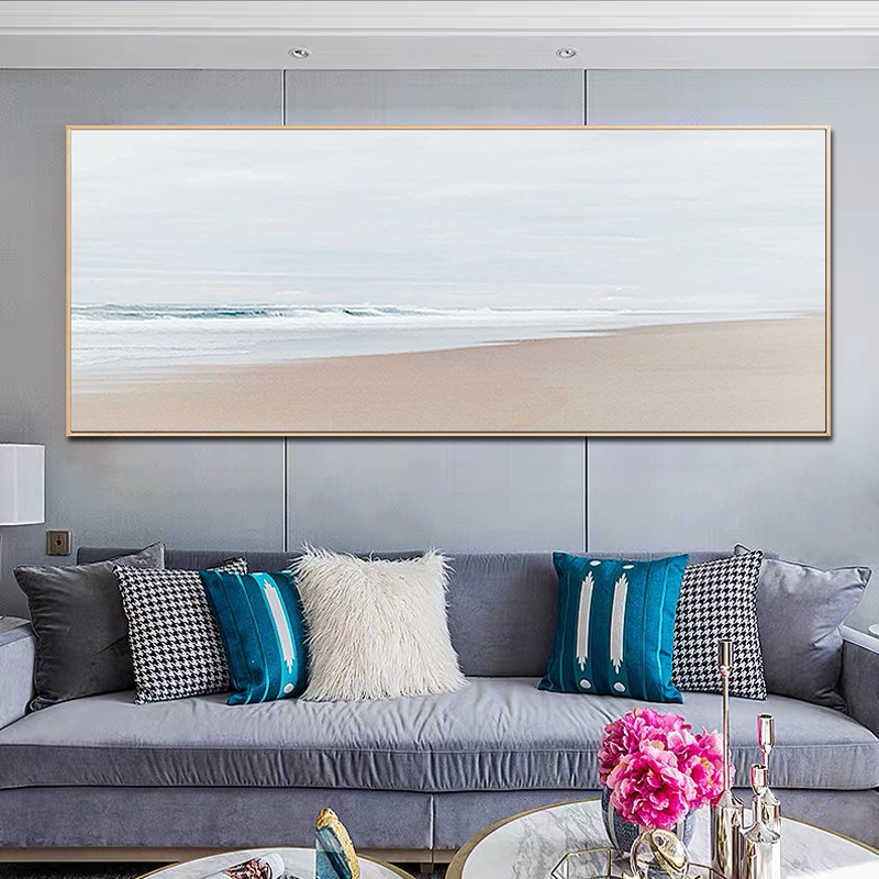 Modern minimalist living room decorative painting horizontal version Nordic sofa background wall hanging painting abstract Morandi hand-painted oil painting