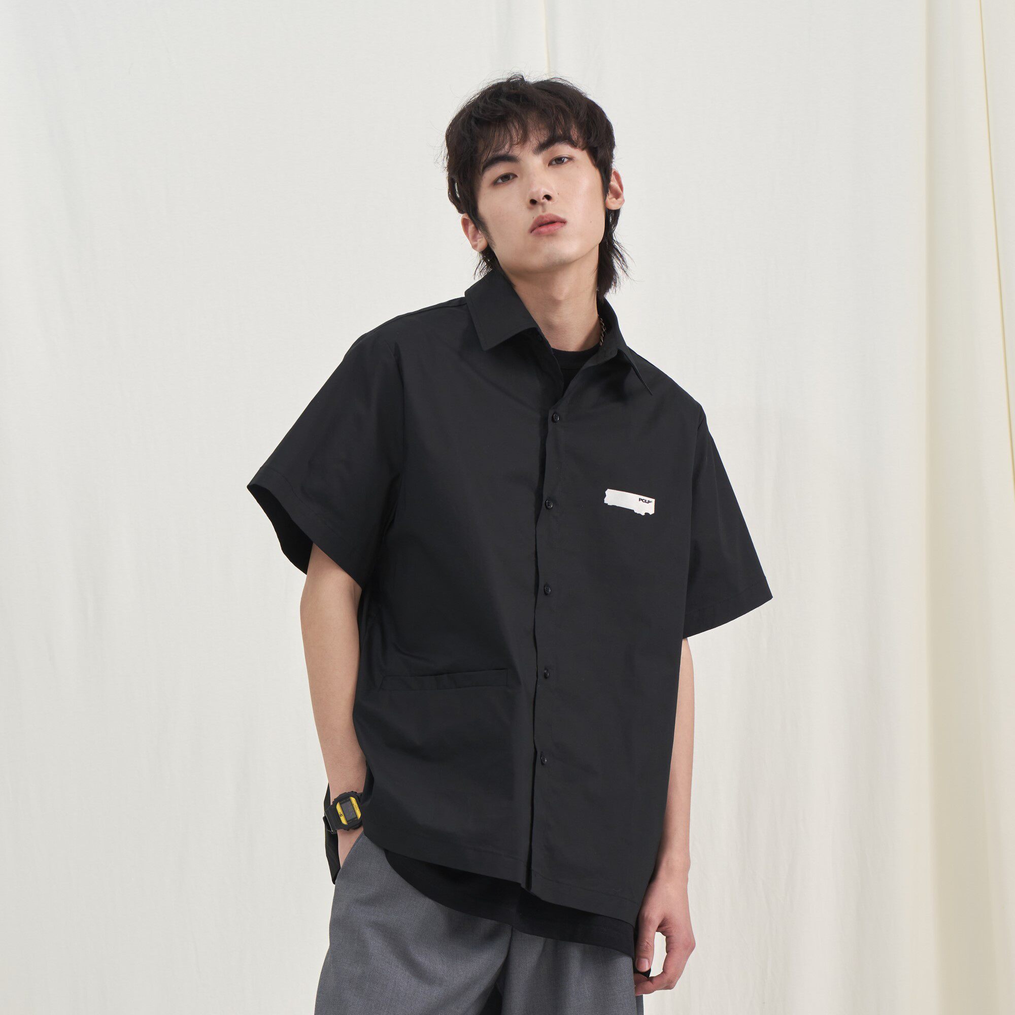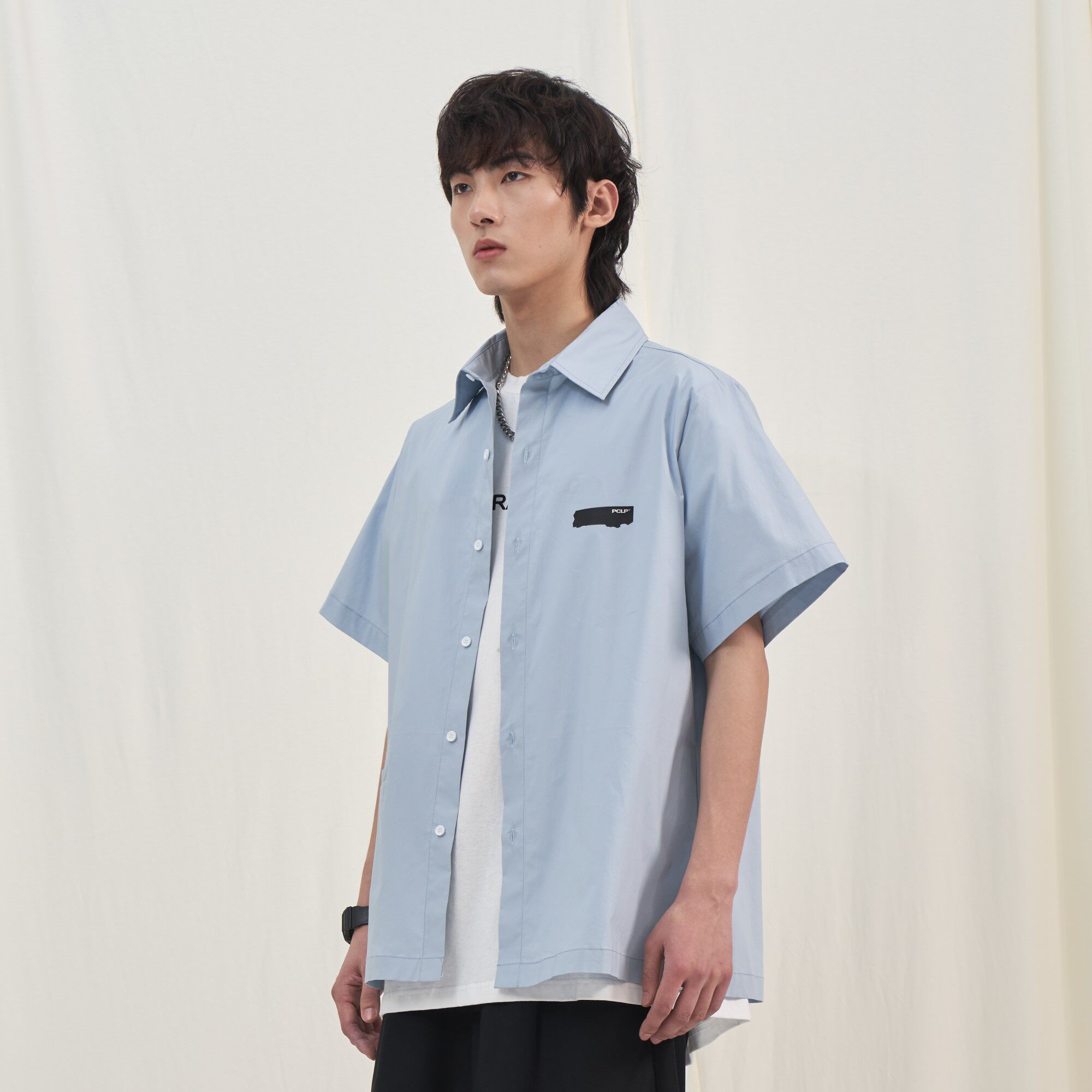 PCLP burn mark short sleeve shirt country tide card casual loose pure color white half sleeve shirt man
