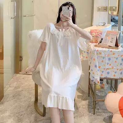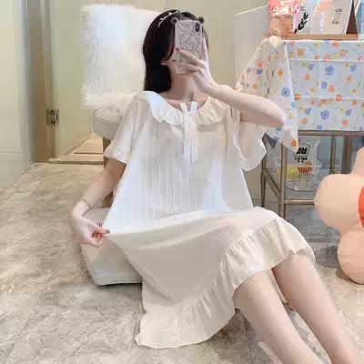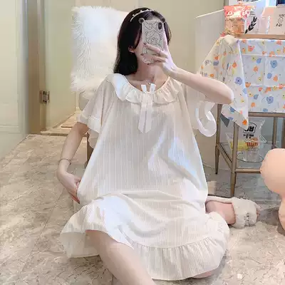 Pure cotton night dress women's summer short-sleeved thin section 2021 new simple and cute princess style loose home clothes pajamas