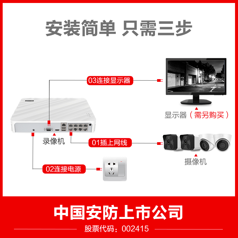 Hikvision network high-definition monitor set complete set of 2 million high-definition POE network cable directly connected to mobile phone remote viewing
