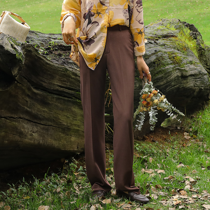 Recessed styling ~ fracking retro wind ~ light and thin pituitary pants high waist casual long pants wide-legged pants woman