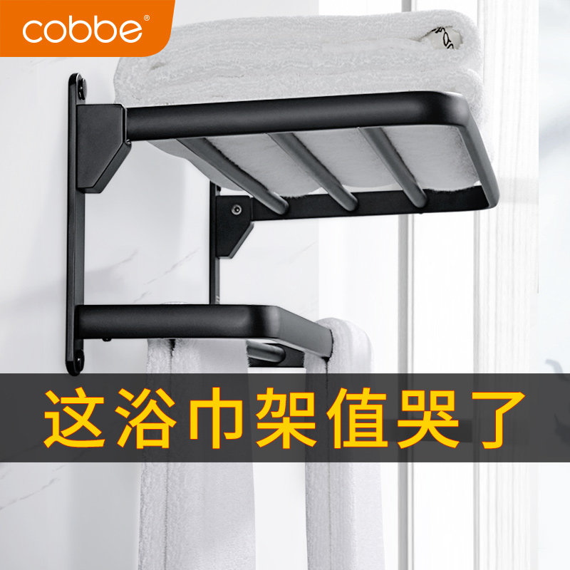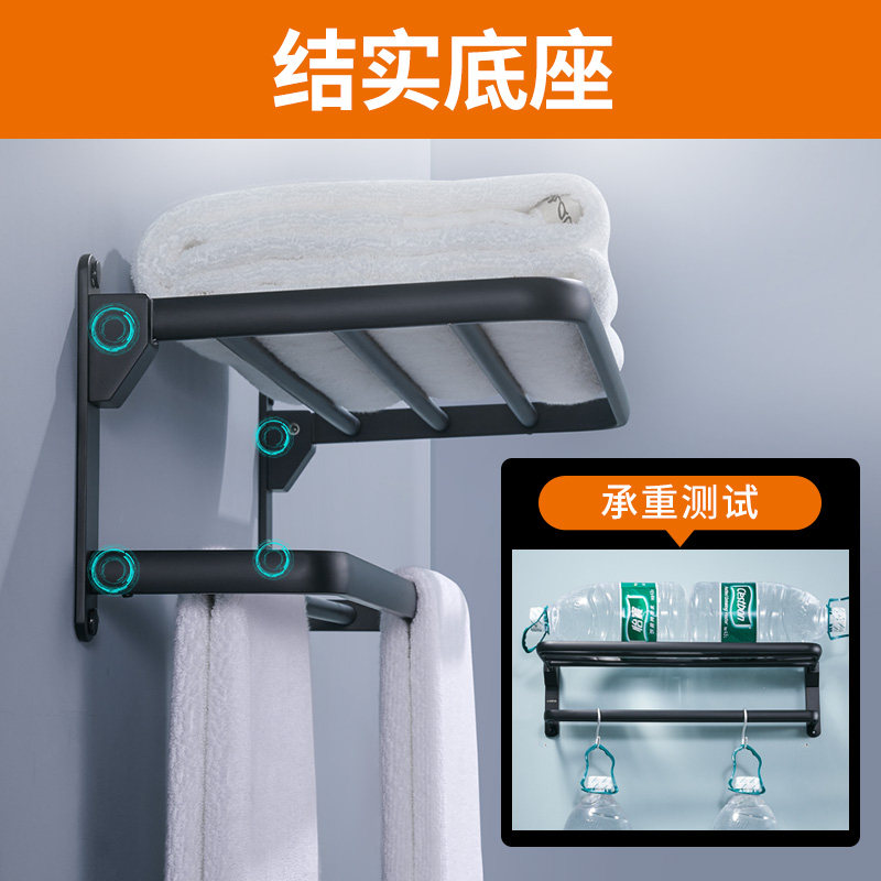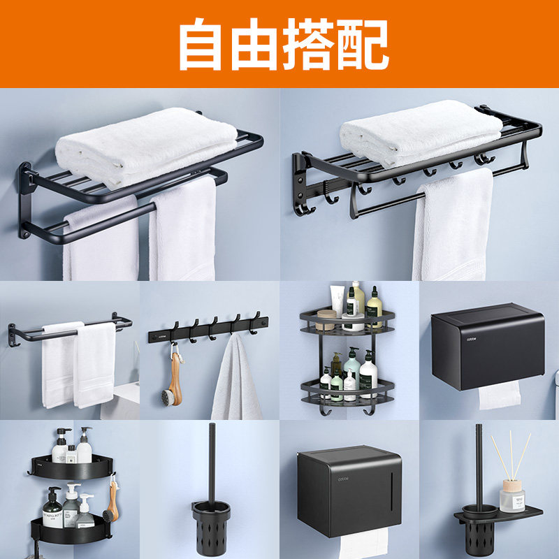 Black bath towel rack space aluminum towel rack free punch toilet toilet bathroom hardware pendant bathroom shelf