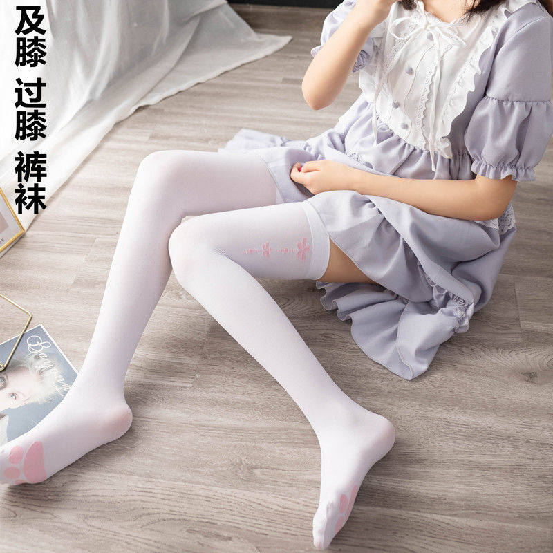 Cherry Blossom Sky Goose Down Pants Socks Thigh Socks Calf Socks Women White Silk Stockings Sweet Cat Paw Socks Students