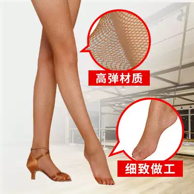 Professional Latin dance net stockings adult caramel hard net dance socks soft Net plus cotton crotch female children competition