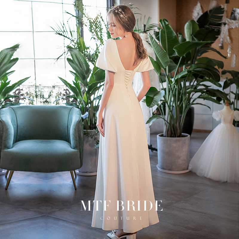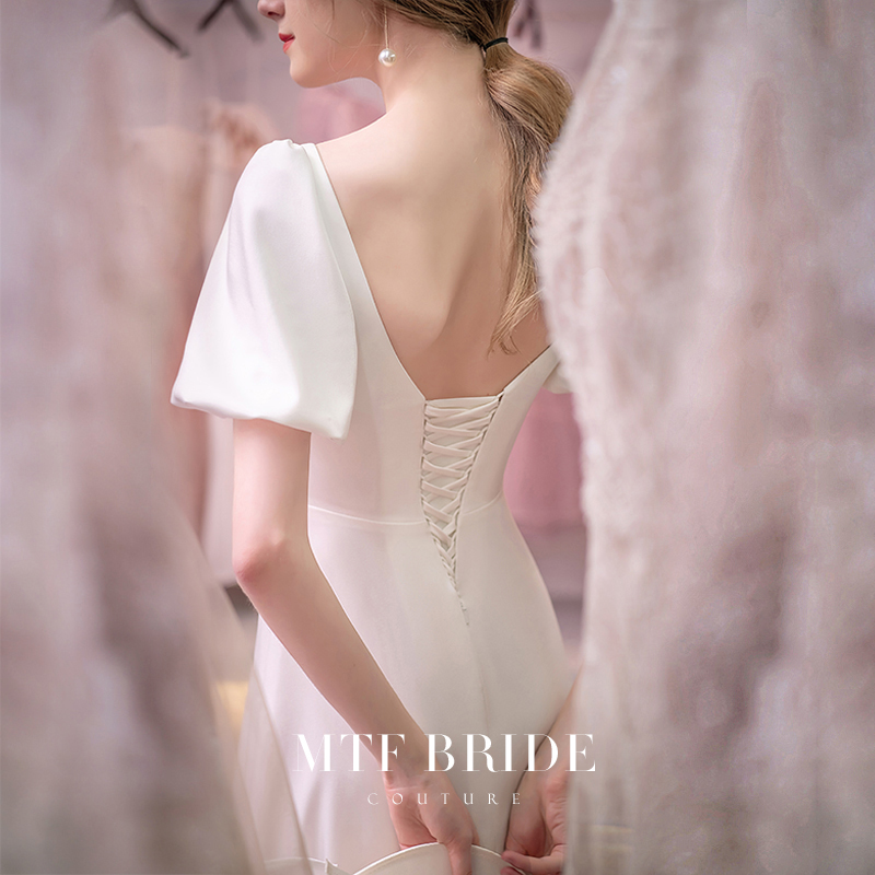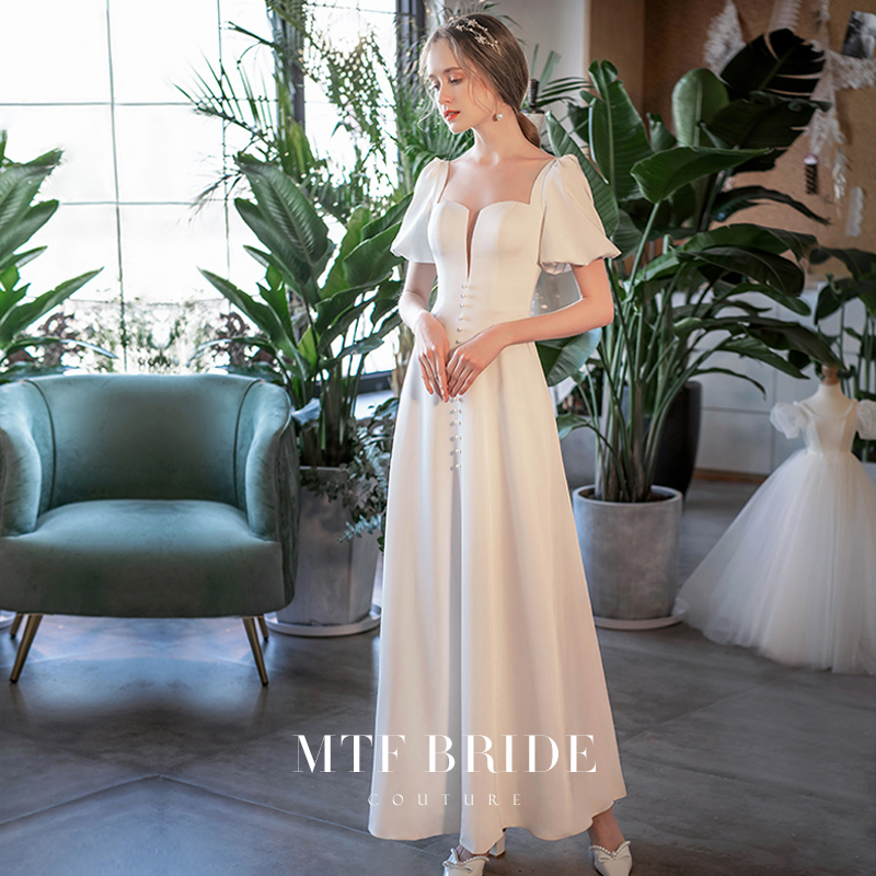 Man Tingfang (Jane)satin light wedding dress 2021 new summer French engagement evening dress female collar card small white skirt