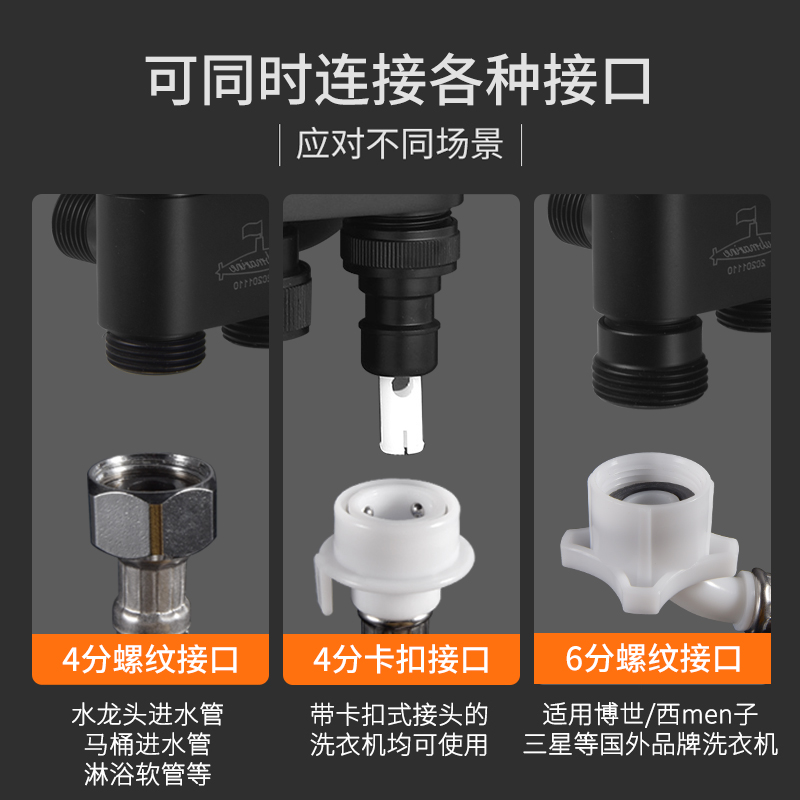 (Deep space black)One-in-two-out washing machine angle valve (space silver) One-in-two-out washing machine angle valve (Deep space Black) (4 6 universal) Washing machine angle valve (space silver) Washing machine angle valve(4