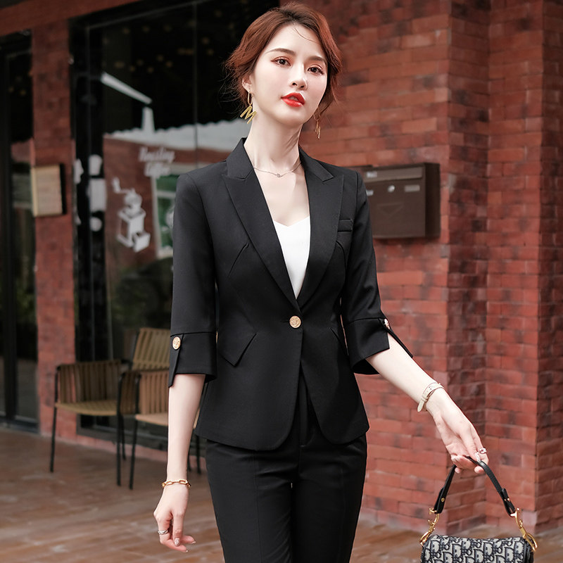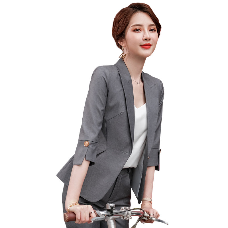 Grey Suit Jacket Woman Summer Thin temperament Goddess Van 70% Sleeve Blouse Fashion Little West Suit Professional Suit