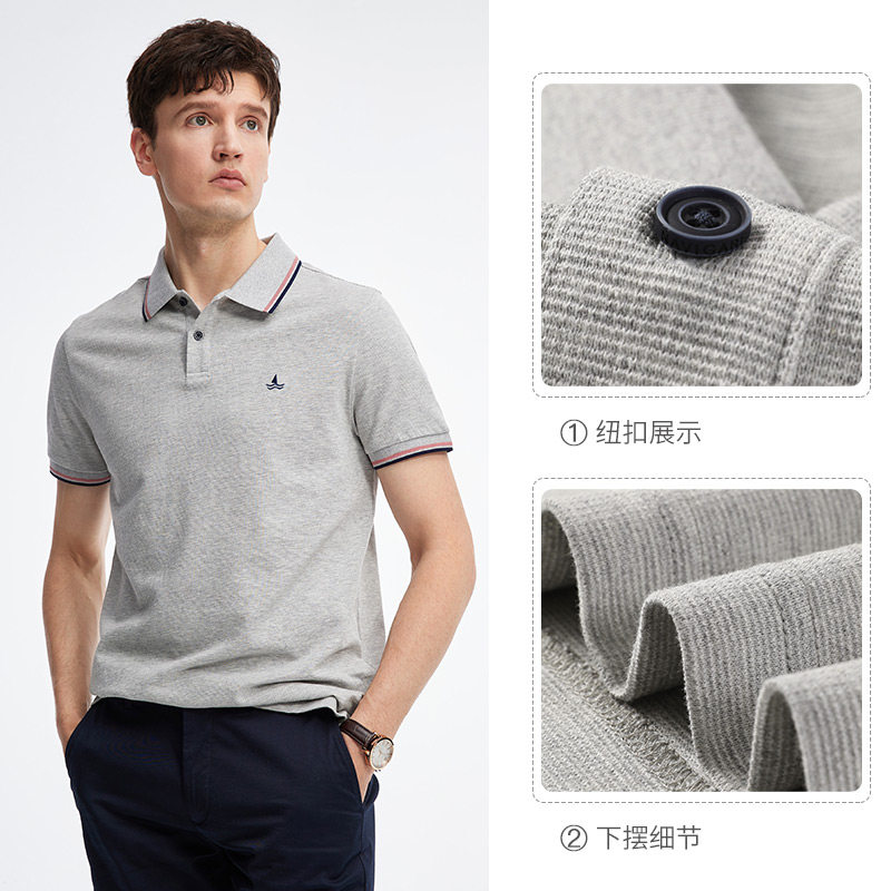 Navigare Italian sailing boat Pure cotton-leaned polo shirt men short sleeve grey embroidery t-shirt casual coat