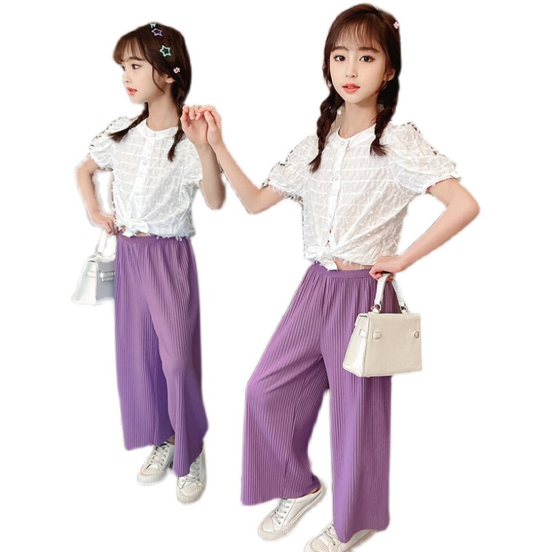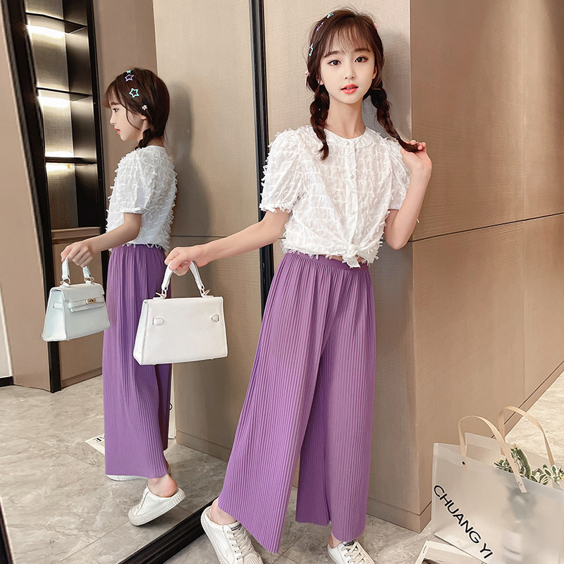Korean girl suit 2021 new summer Korean version casual wide pants in the big boy temperament casual two-piece