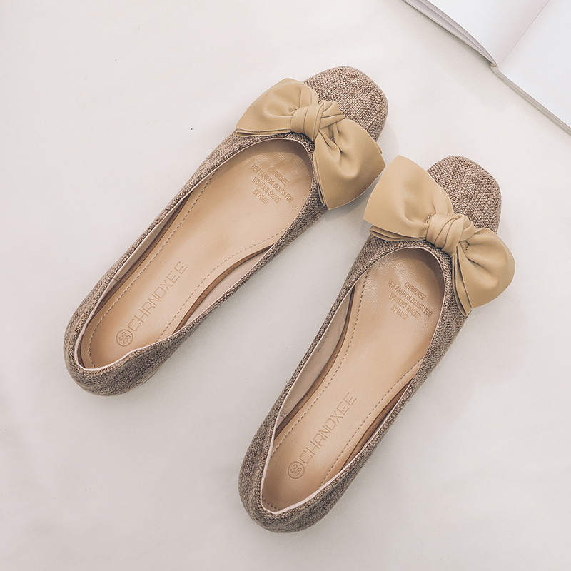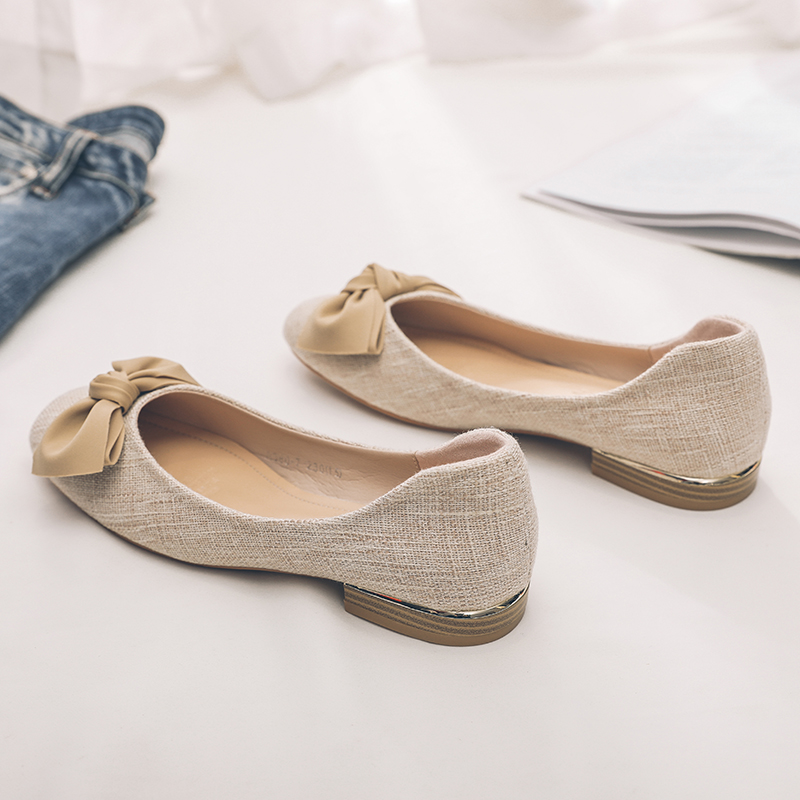 H H Shoesい bow-knot round-toe flat-bottomed shoes women's soft-bottomed soft-bottomed late evening wind gentle shoes