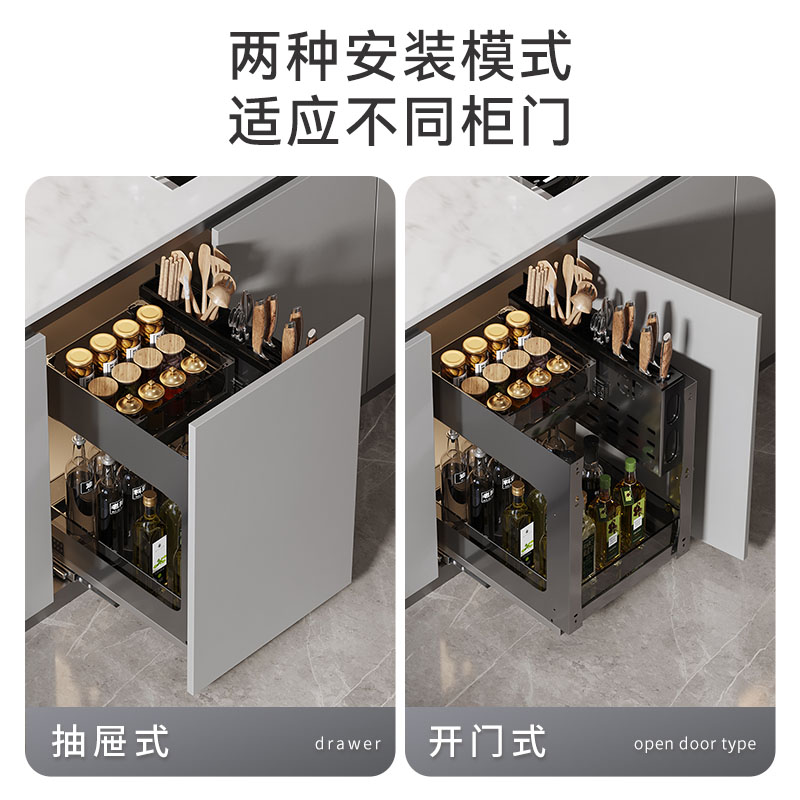 (300 cabinet) black gold steel-tempered glass double layer seasoning basket (350 cabinet) black gold steel-tempered glass double layer seasoning basket (400 cabinet) black gold steel-tempered glass double layer seasoning basket