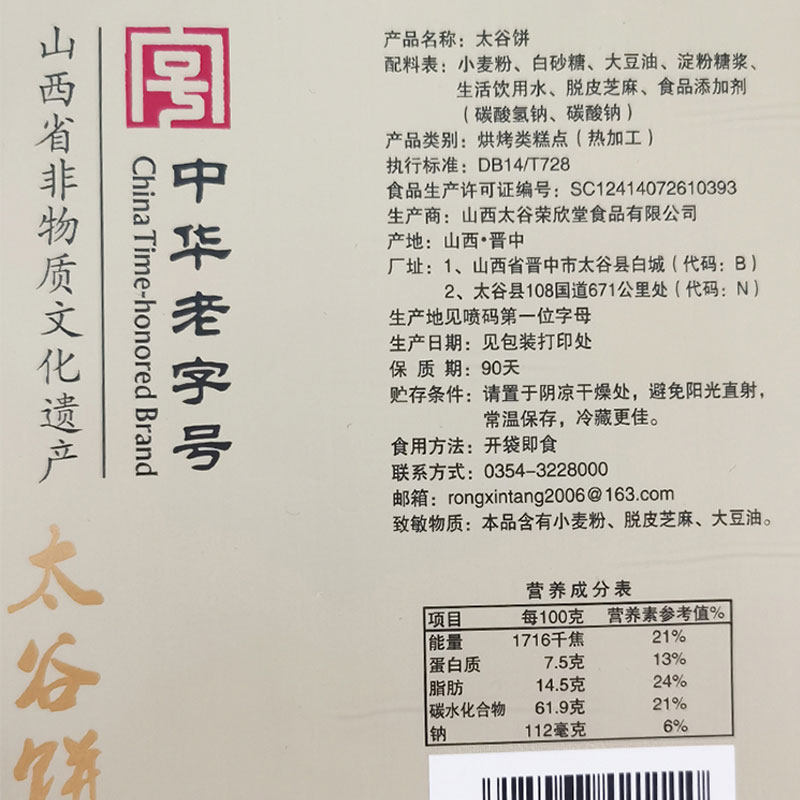 Rongxin Hall Taiya Pie 2100g Original Taste Whole Box Shanxi Secret Breakfast Bread Tradition Tasty Snack Cakes