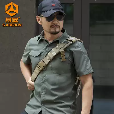 Summer outdoor short-sleeved shirt men's ultra-thin breathable military fans tactical quick-drying shirt lapel-collar tooling casual men's top